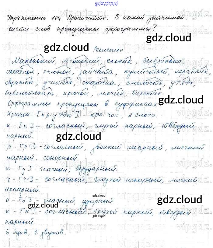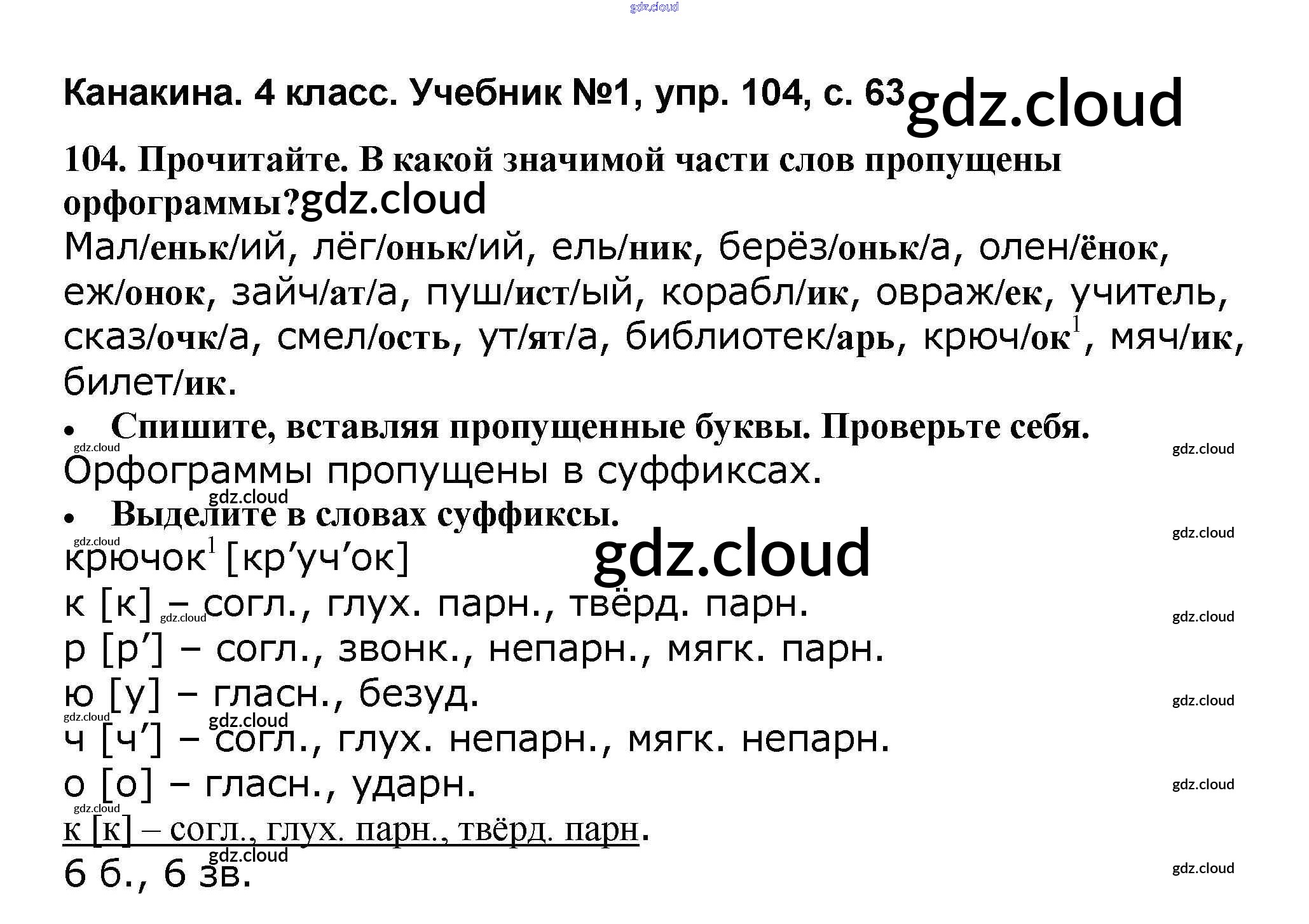 Ответ на задание 104 Учебник Русский язык за 4 (четвертый) класс Канакина, Горецкий Школа России 2015 Часть 1, 2
