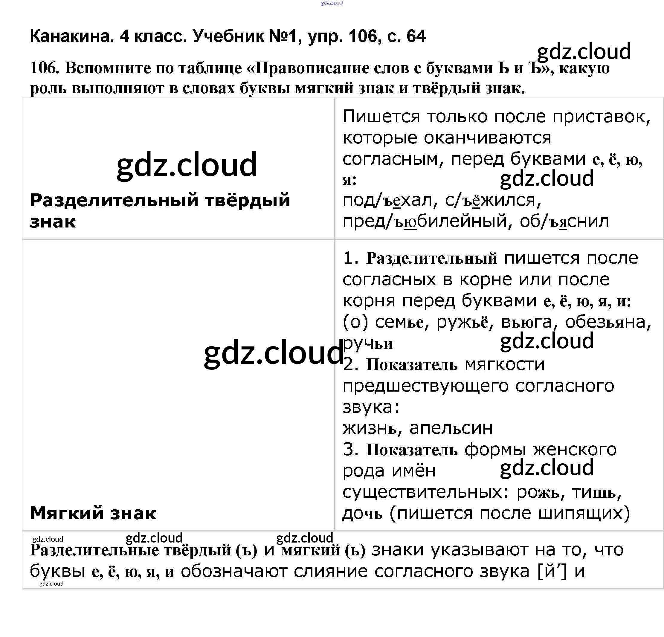 Ответ на задание 106 Учебник Русский язык за 4 (четвертый) класс Канакина, Горецкий Школа России 2015 Часть 1, 2
