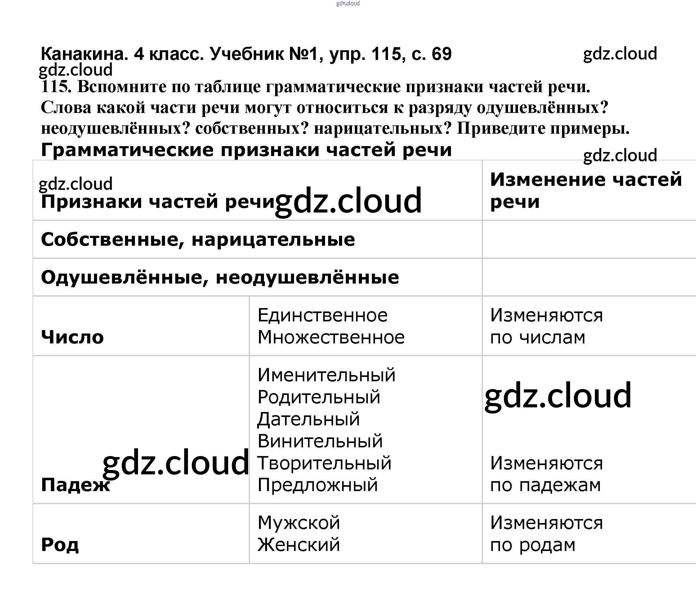 Ответ на задание 115 Учебник Русский язык за 4 (четвертый) класс Канакина, Горецкий Школа России 2015 Часть 1, 2