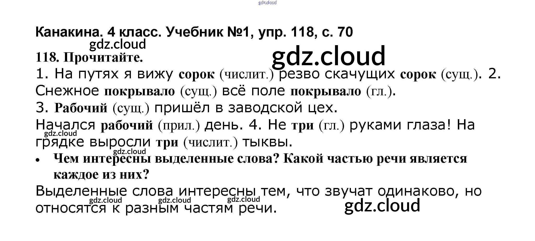 Ответ на задание 118 Учебник Русский язык за 4 (четвертый) класс Канакина, Горецкий Школа России 2015 Часть 1, 2