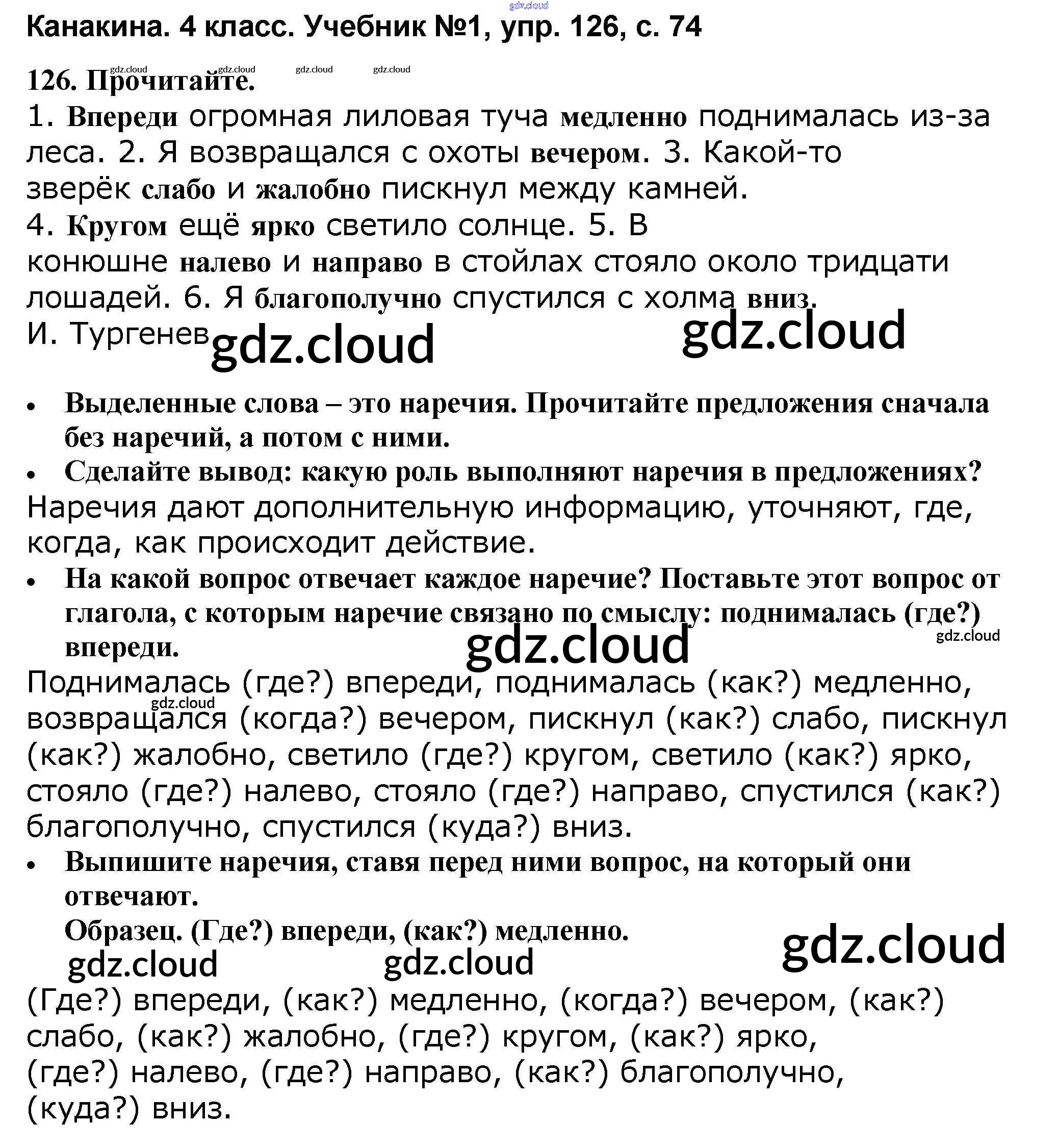 Ответ на задание 126 Учебник Русский язык за 4 (четвертый) класс Канакина, Горецкий Школа России 2015 Часть 1, 2