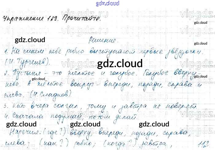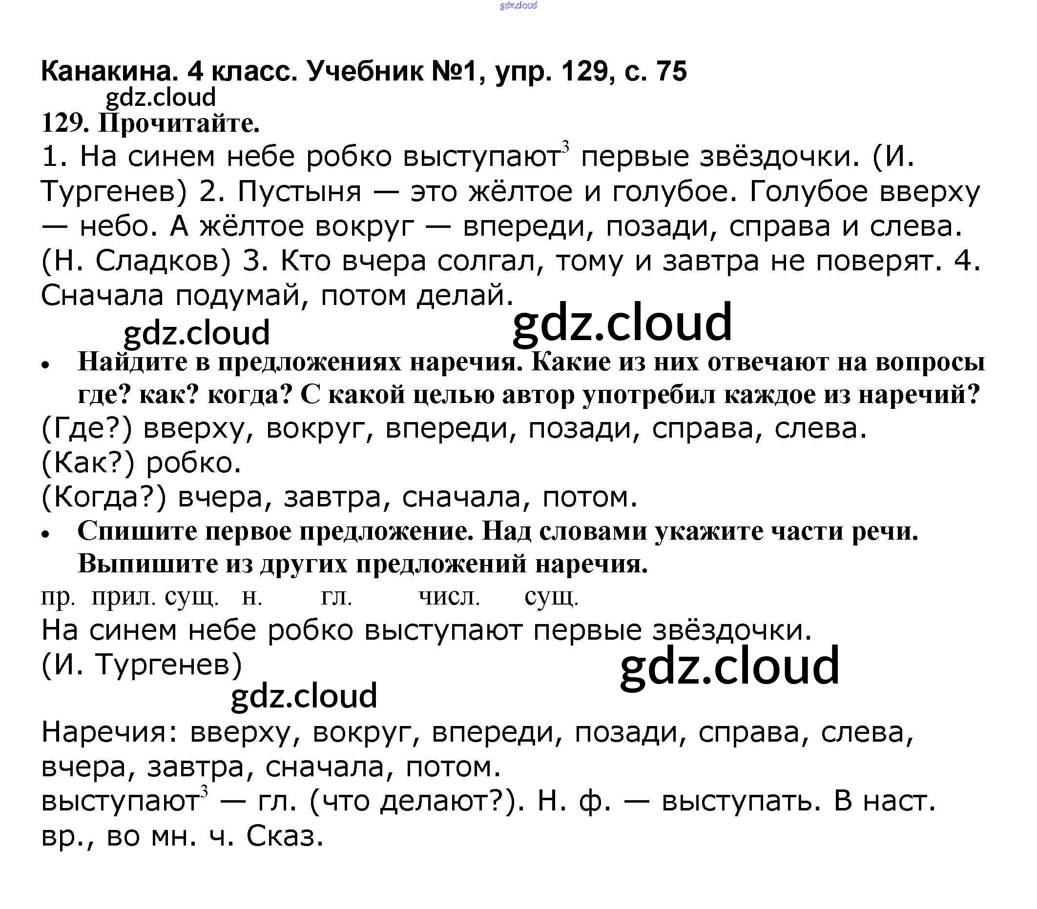 Ответ на задание 129 Учебник Русский язык за 4 (четвертый) класс Канакина, Горецкий Школа России 2015 Часть 1, 2
