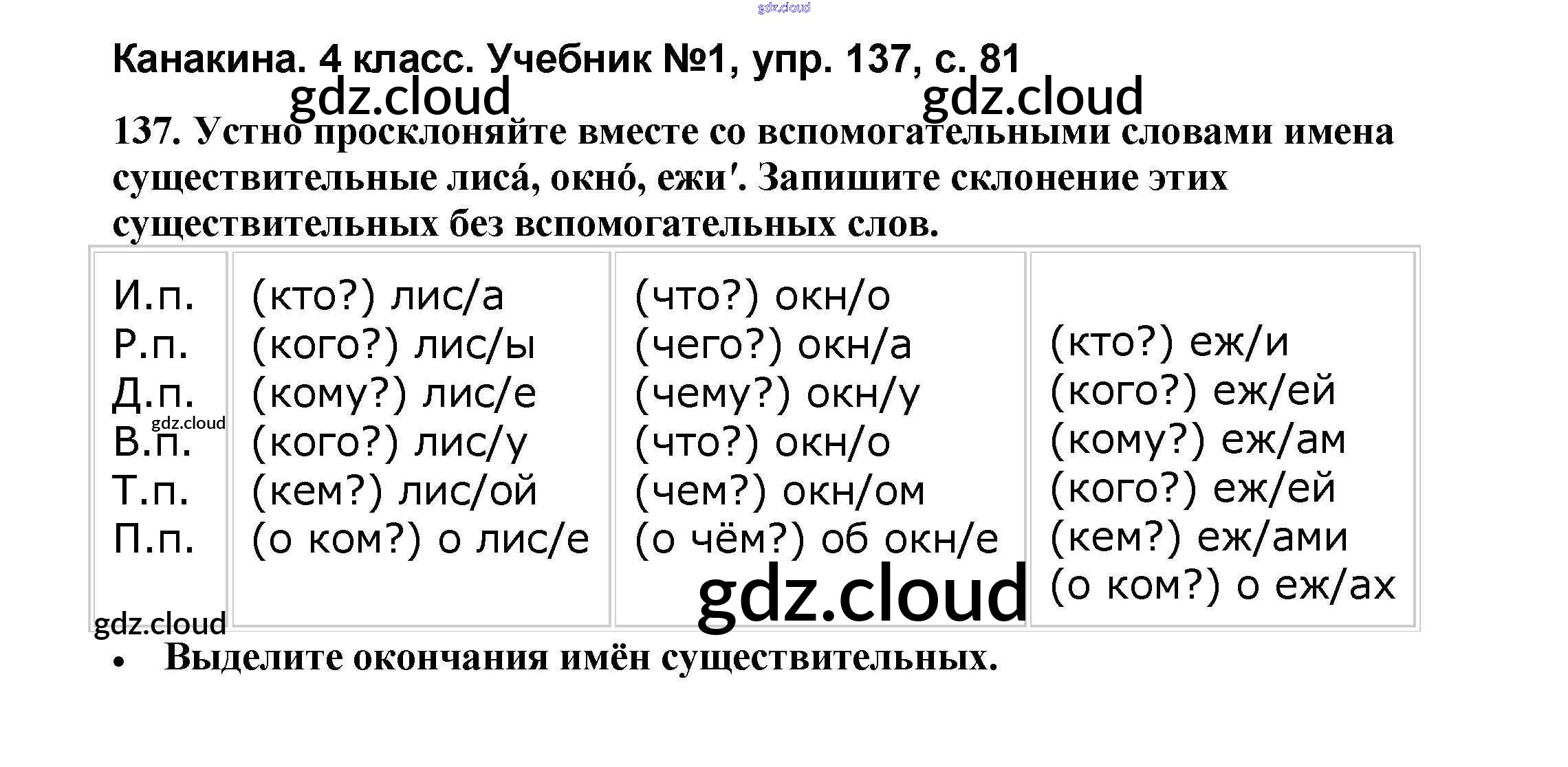 Ответ на задание 137 Учебник Русский язык за 4 (четвертый) класс Канакина, Горецкий Школа России 2015 Часть 1, 2