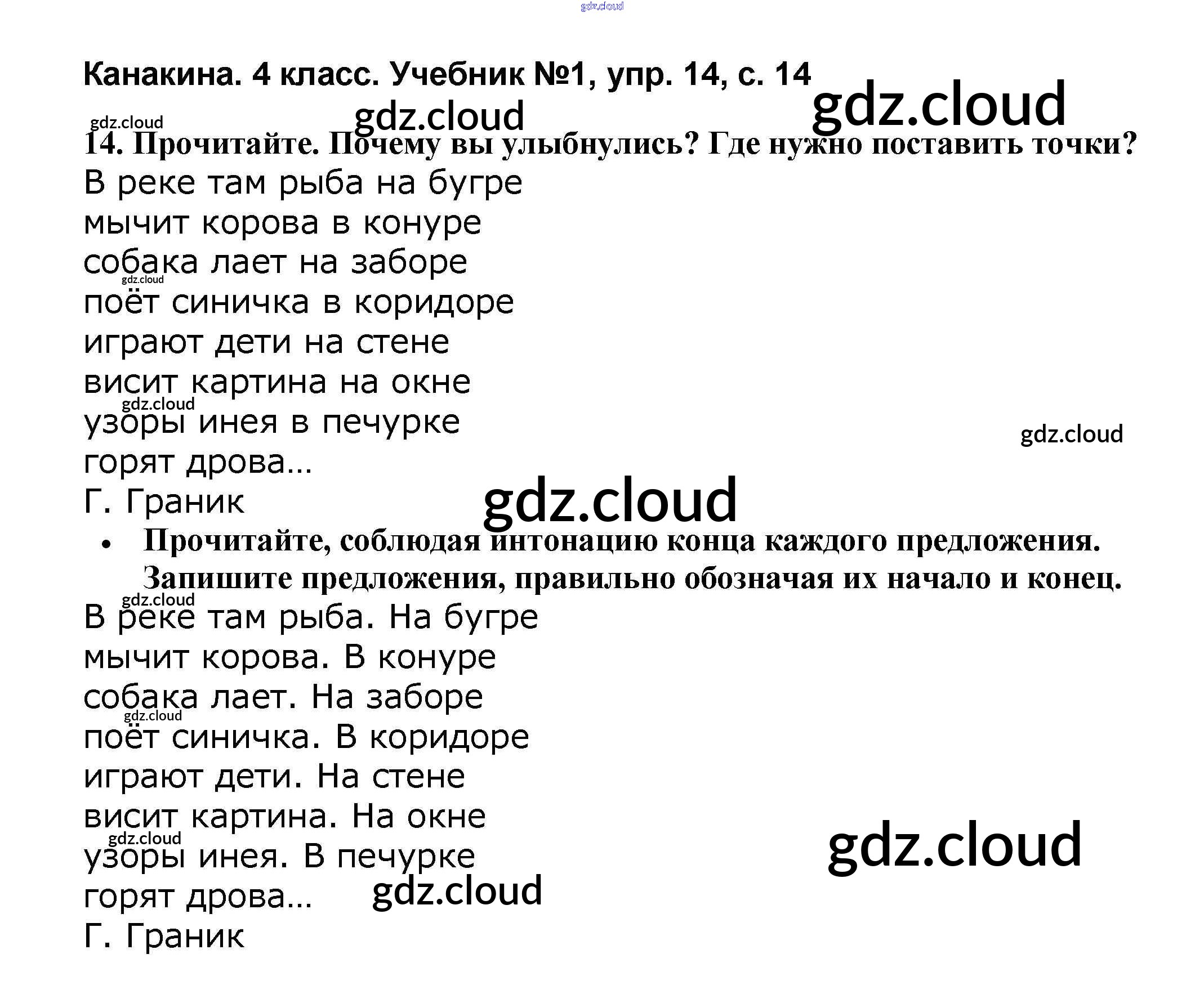 Ответ на задание 14 Учебник Русский язык за 4 (четвертый) класс Канакина, Горецкий Школа России 2015 Часть 1, 2