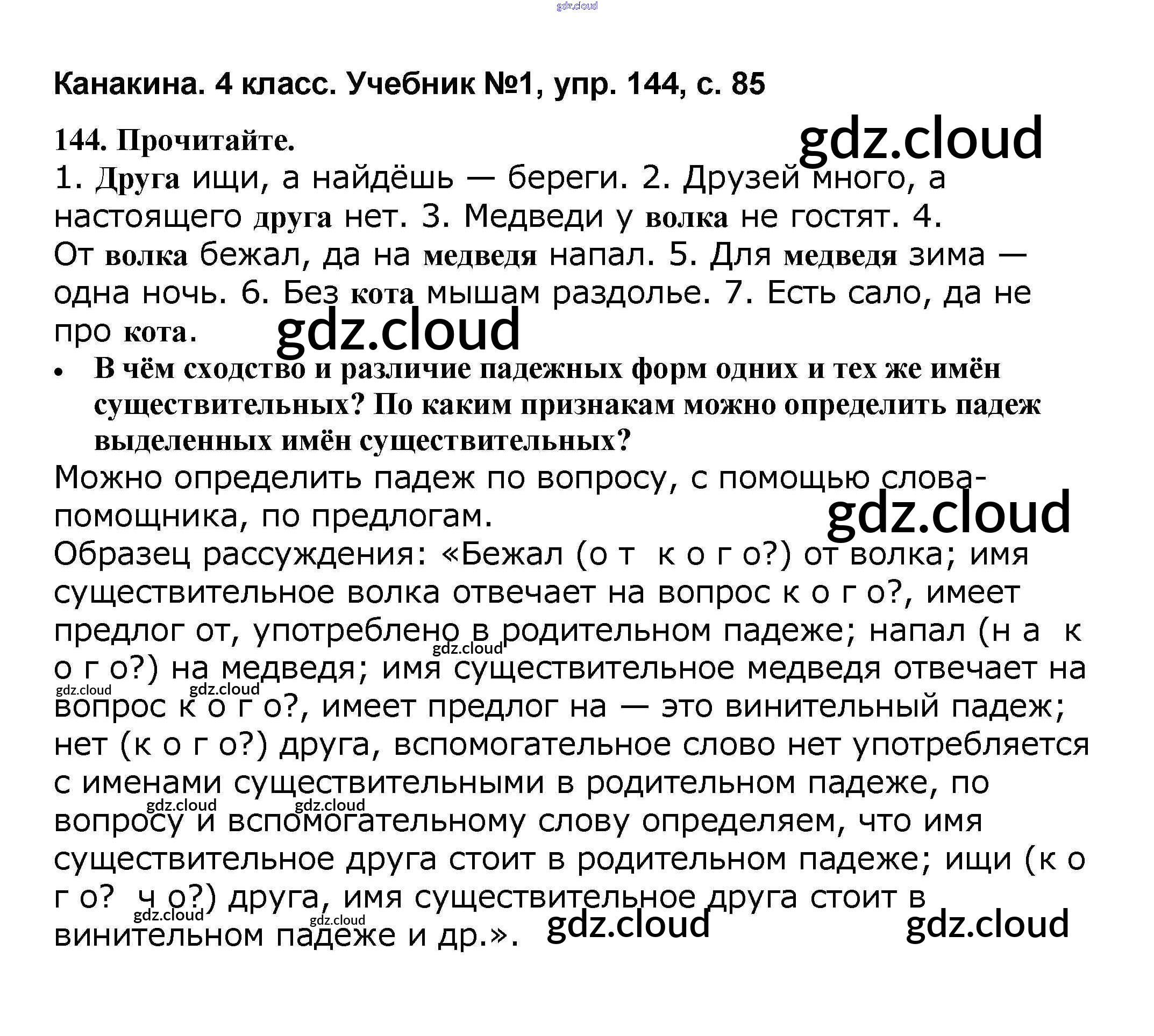 Ответ на задание 144 Учебник Русский язык за 4 (четвертый) класс Канакина, Горецкий Школа России 2015 Часть 1, 2