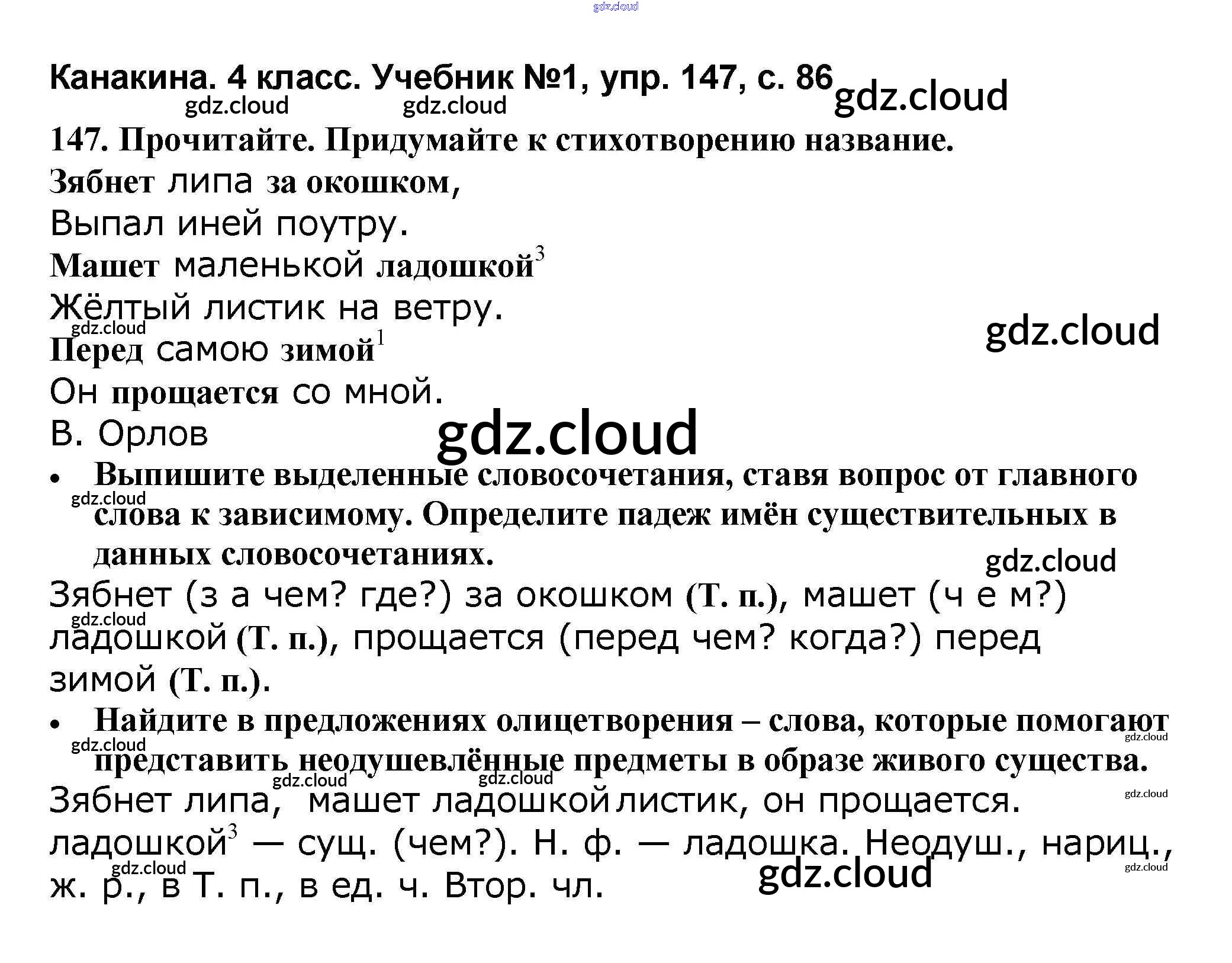 Ответ на задание 147 Учебник Русский язык за 4 (четвертый) класс Канакина, Горецкий Школа России 2015 Часть 1, 2