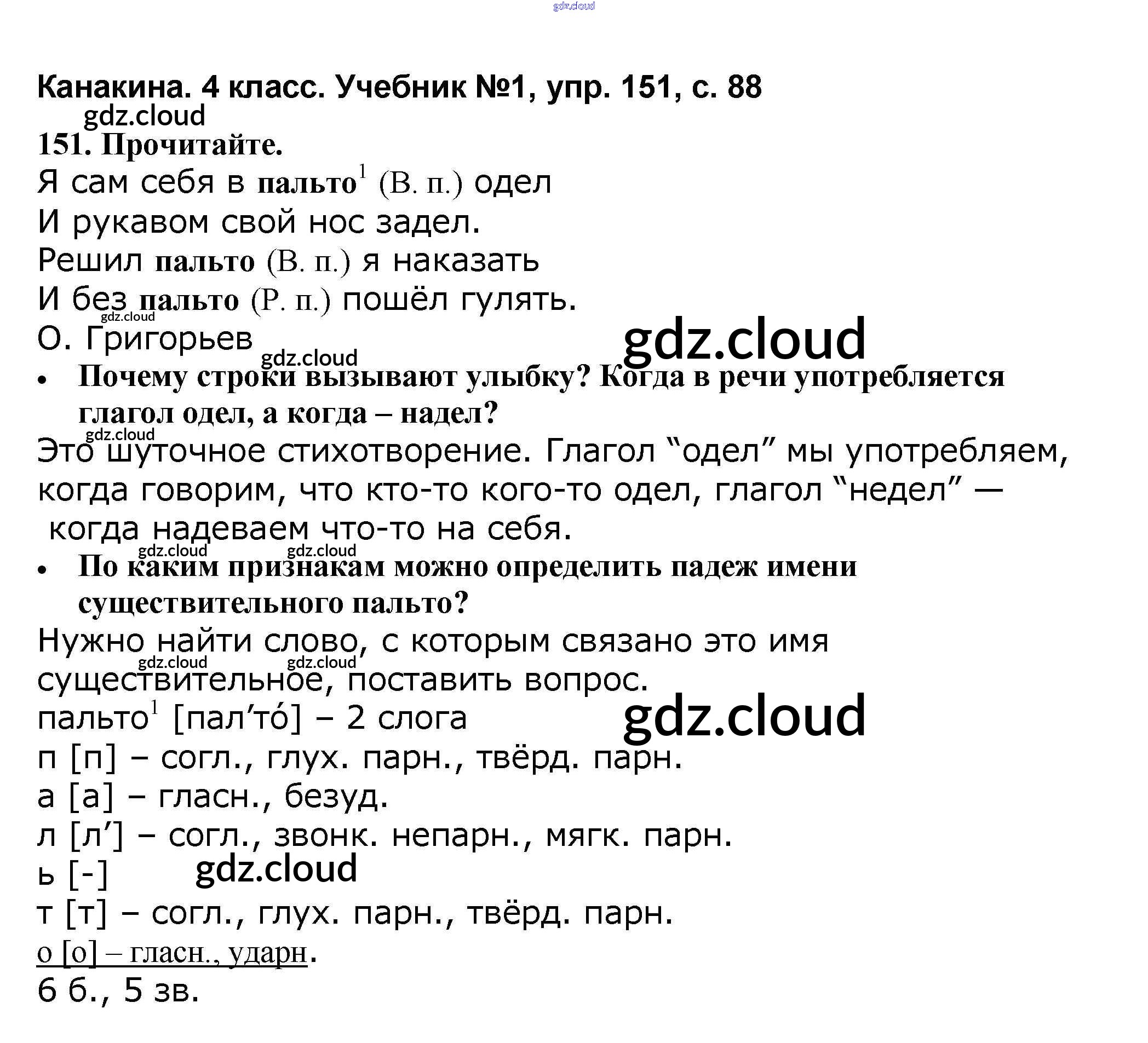 Ответ на задание 151 Учебник Русский язык за 4 (четвертый) класс Канакина, Горецкий Школа России 2015 Часть 1, 2