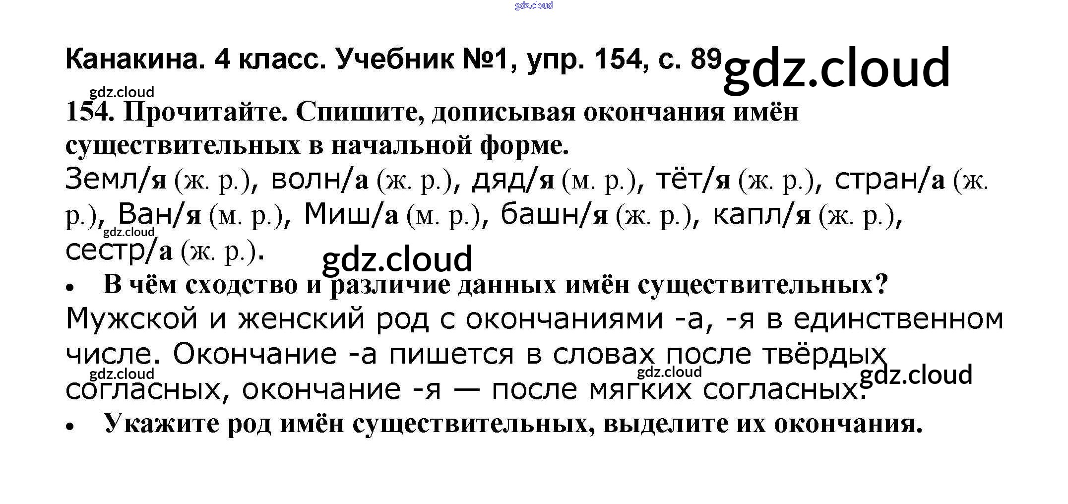 Ответ на задание 154 Учебник Русский язык за 4 (четвертый) класс Канакина, Горецкий Школа России 2015 Часть 1, 2
