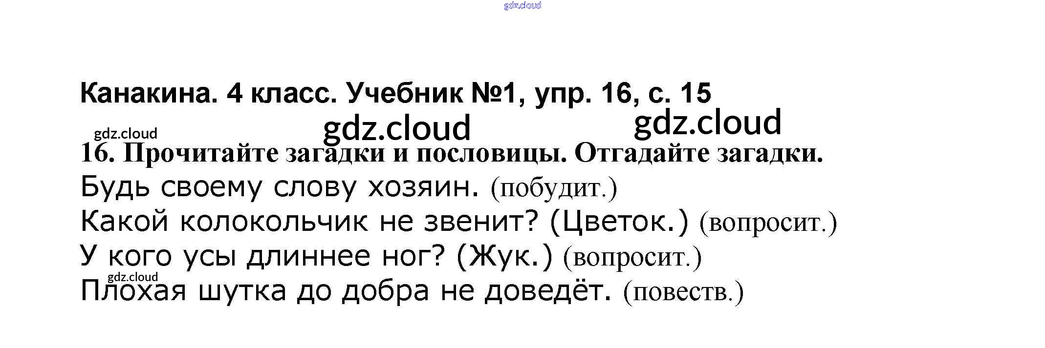 Ответ на задание 16 Учебник Русский язык за 4 (четвертый) класс Канакина, Горецкий Школа России 2015 Часть 1, 2