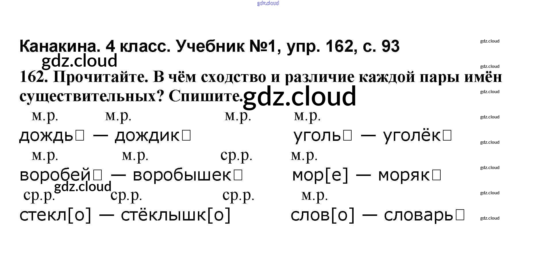 Ответ на задание 162 Учебник Русский язык за 4 (четвертый) класс Канакина, Горецкий Школа России 2015 Часть 1, 2