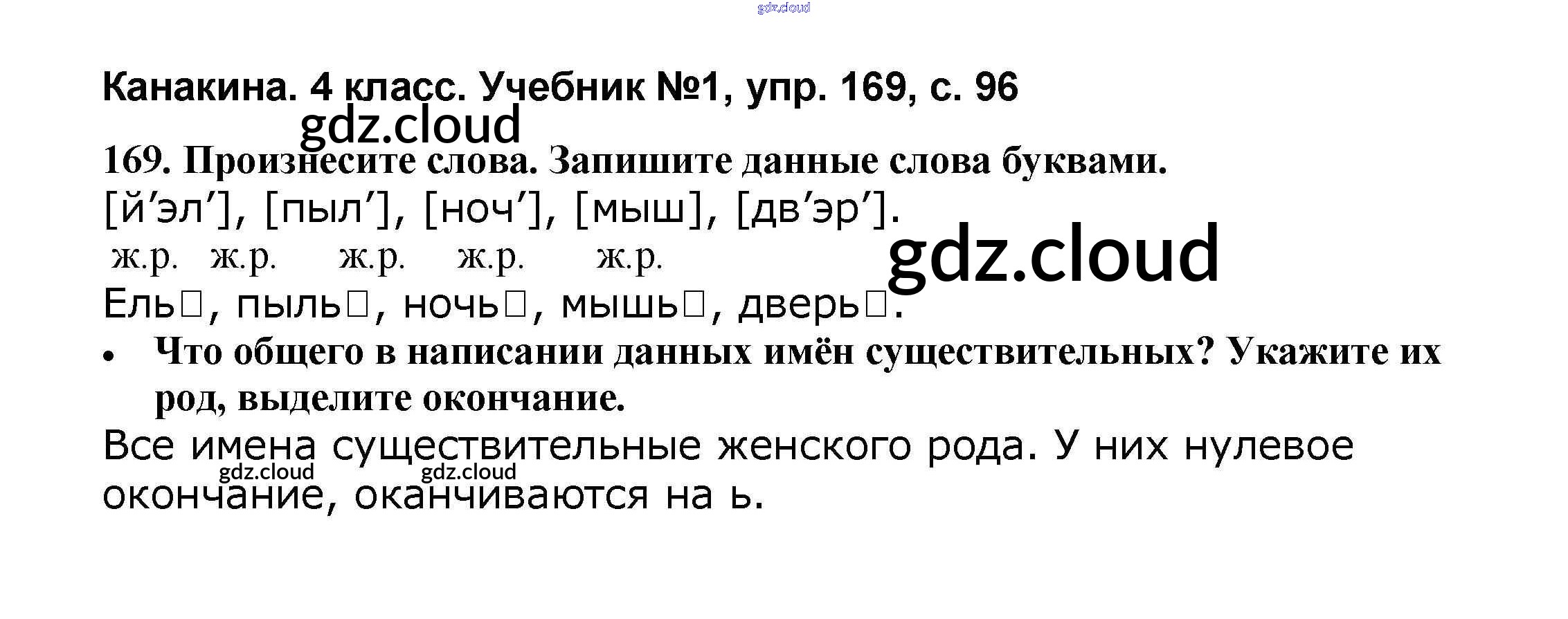 Ответ на задание 169 Учебник Русский язык за 4 (четвертый) класс Канакина, Горецкий Школа России 2015 Часть 1, 2