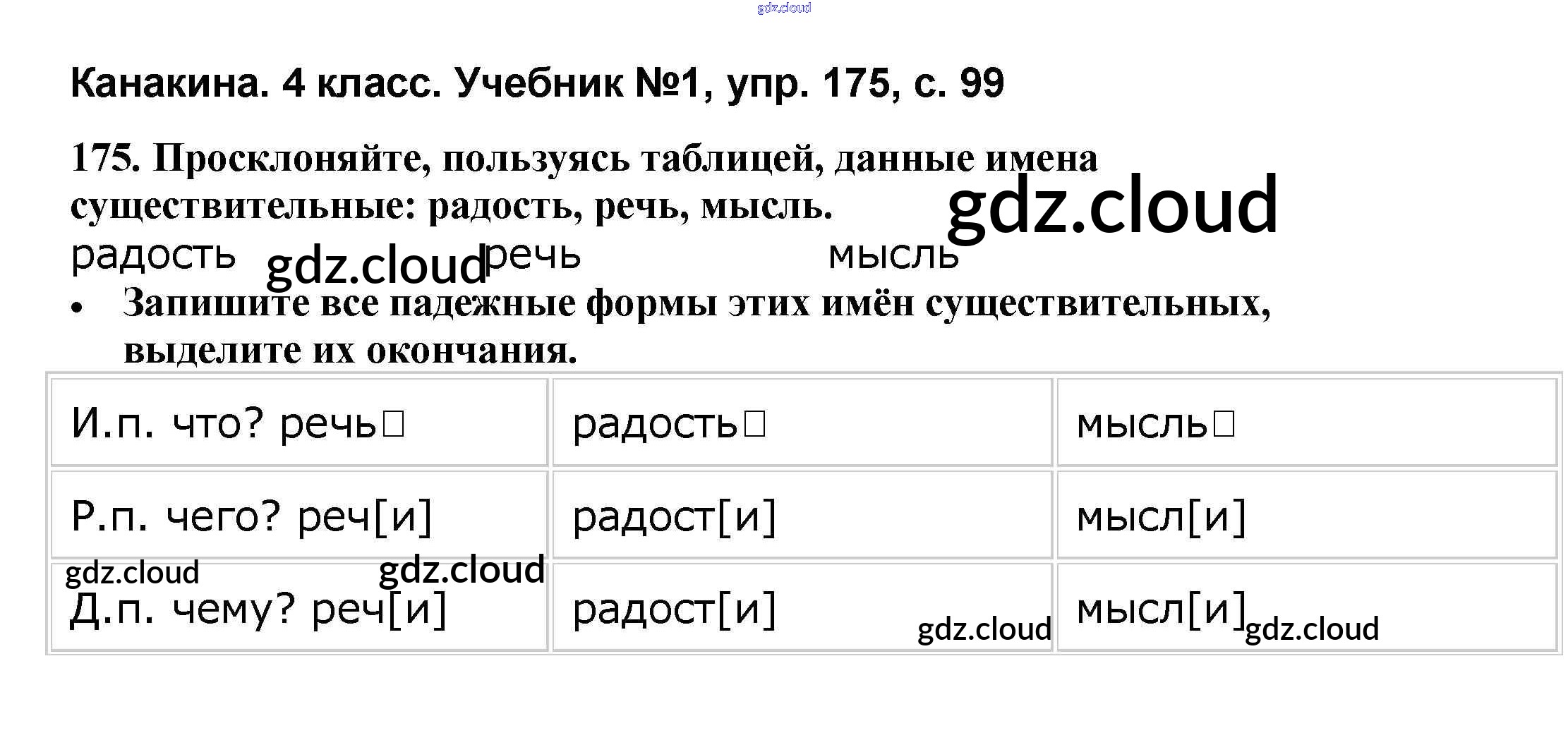 Ответ на задание 175 Учебник Русский язык за 4 (четвертый) класс Канакина, Горецкий Школа России 2015 Часть 1, 2