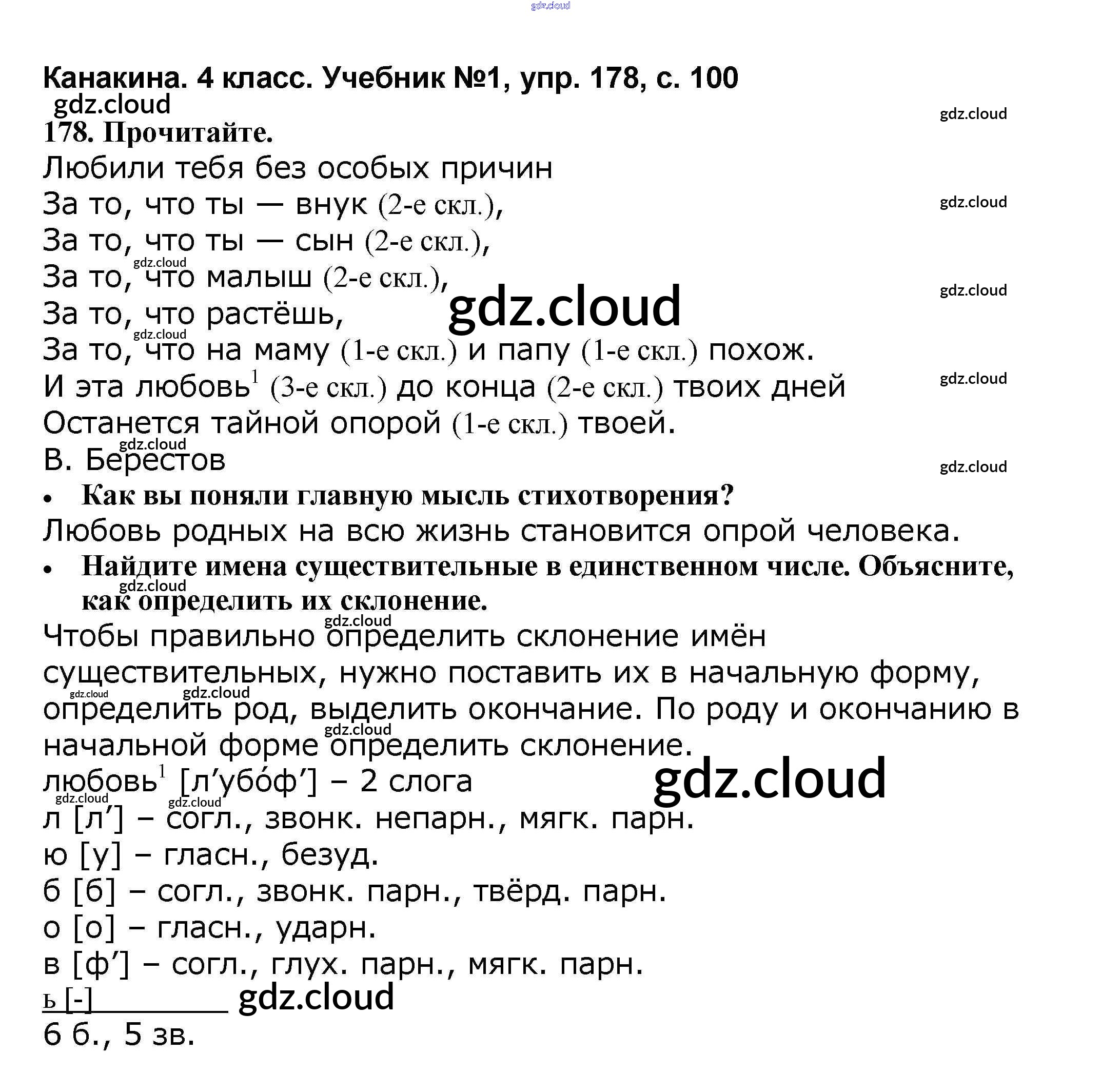Ответ на задание 178 Учебник Русский язык за 4 (четвертый) класс Канакина, Горецкий Школа России 2015 Часть 1, 2
