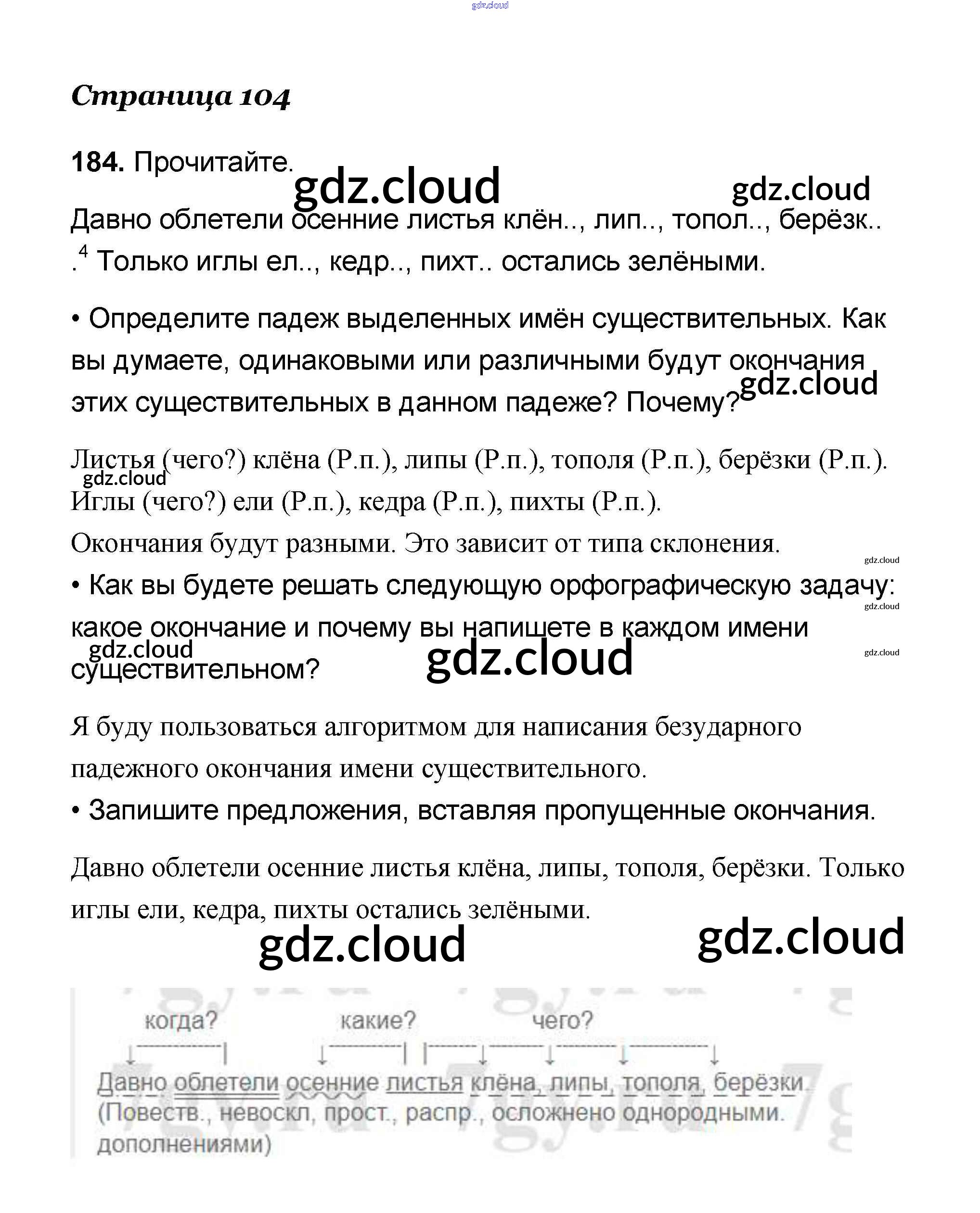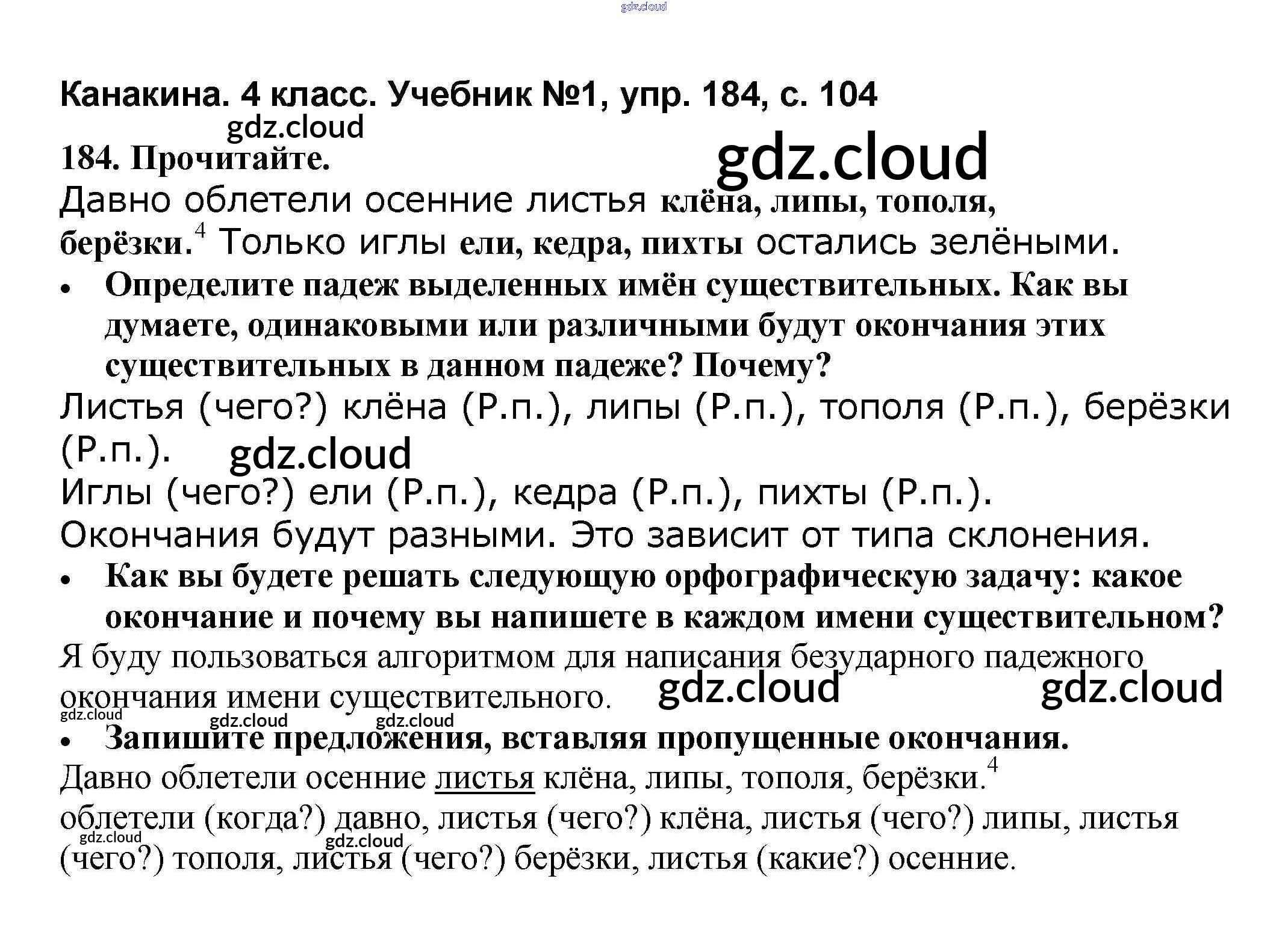 Ответ на задание 184 Учебник Русский язык за 4 (четвертый) класс Канакина, Горецкий Школа России 2015 Часть 1, 2