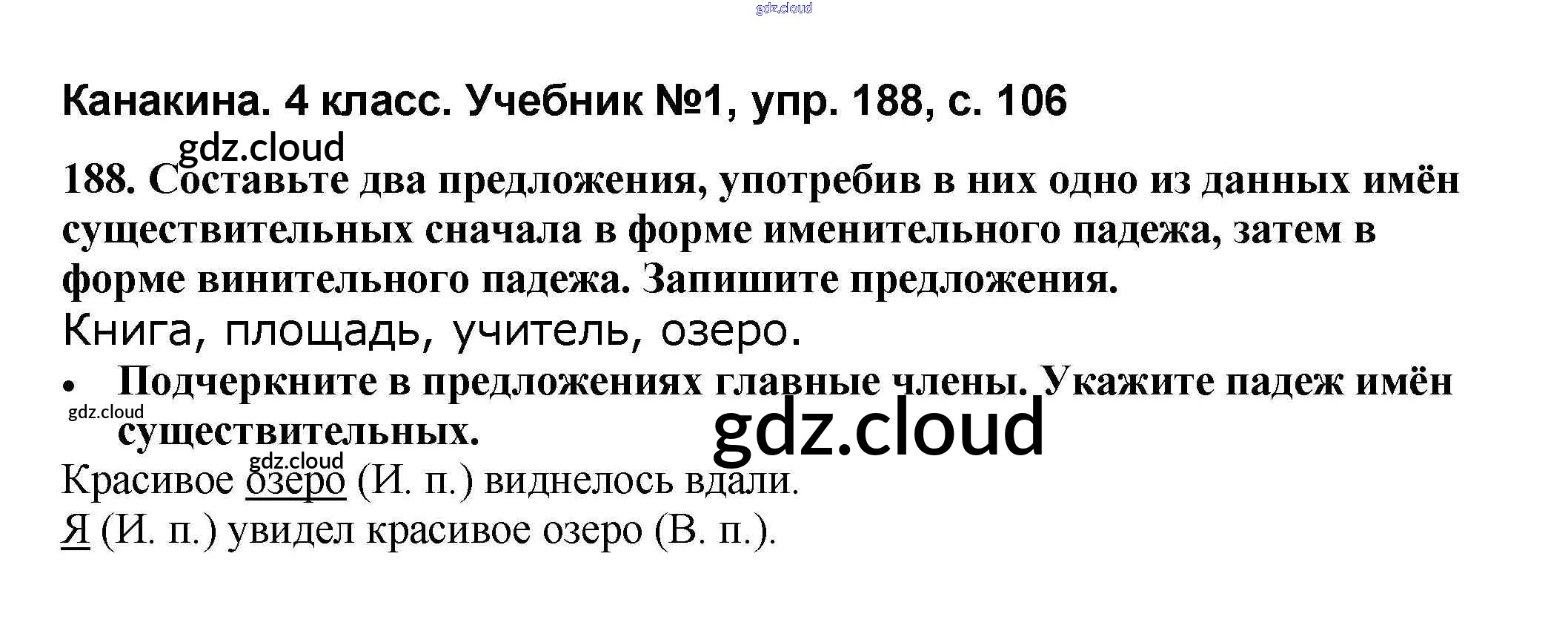 Ответ на задание 188 Учебник Русский язык за 4 (четвертый) класс Канакина, Горецкий Школа России 2015 Часть 1, 2