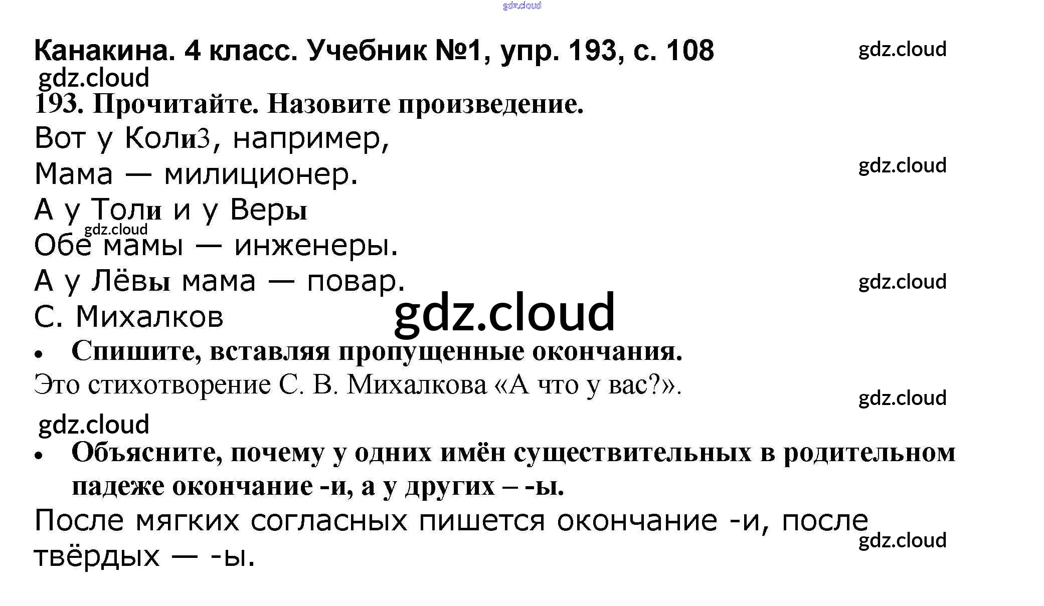 Ответ на задание 193 Учебник Русский язык за 4 (четвертый) класс Канакина, Горецкий Школа России 2015 Часть 1, 2