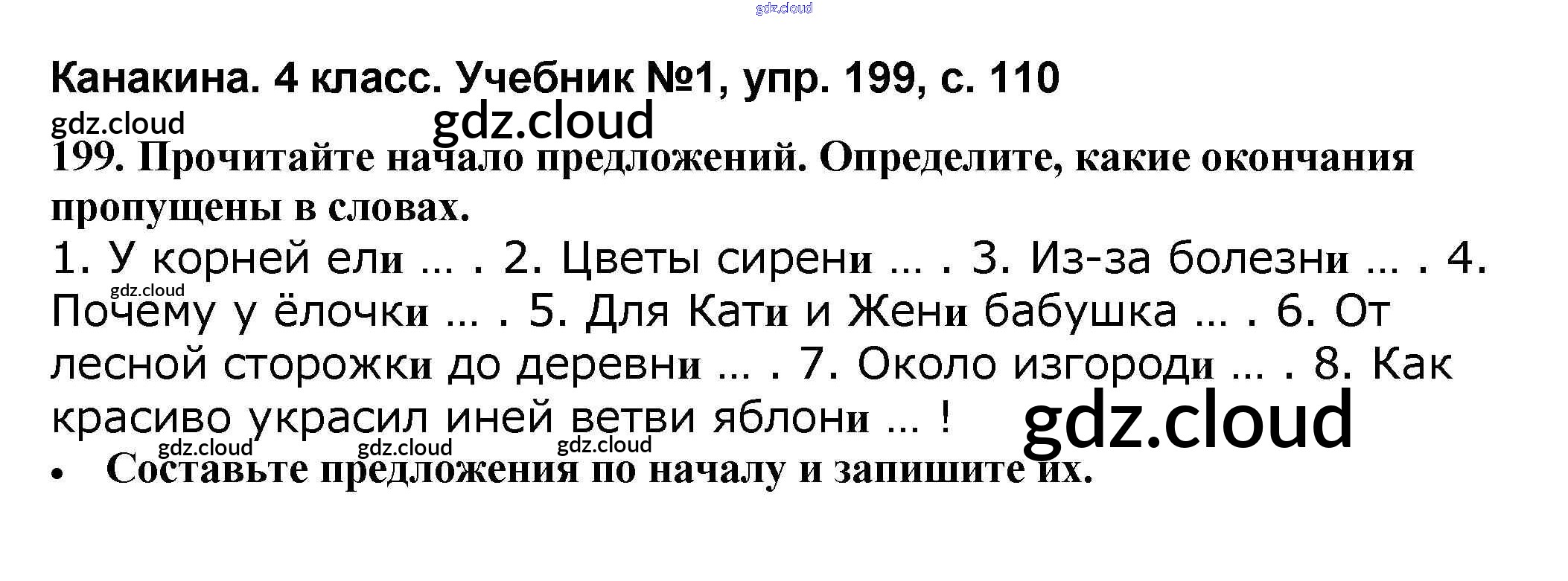 Ответ на задание 199 Учебник Русский язык за 4 (четвертый) класс Канакина, Горецкий Школа России 2015 Часть 1, 2