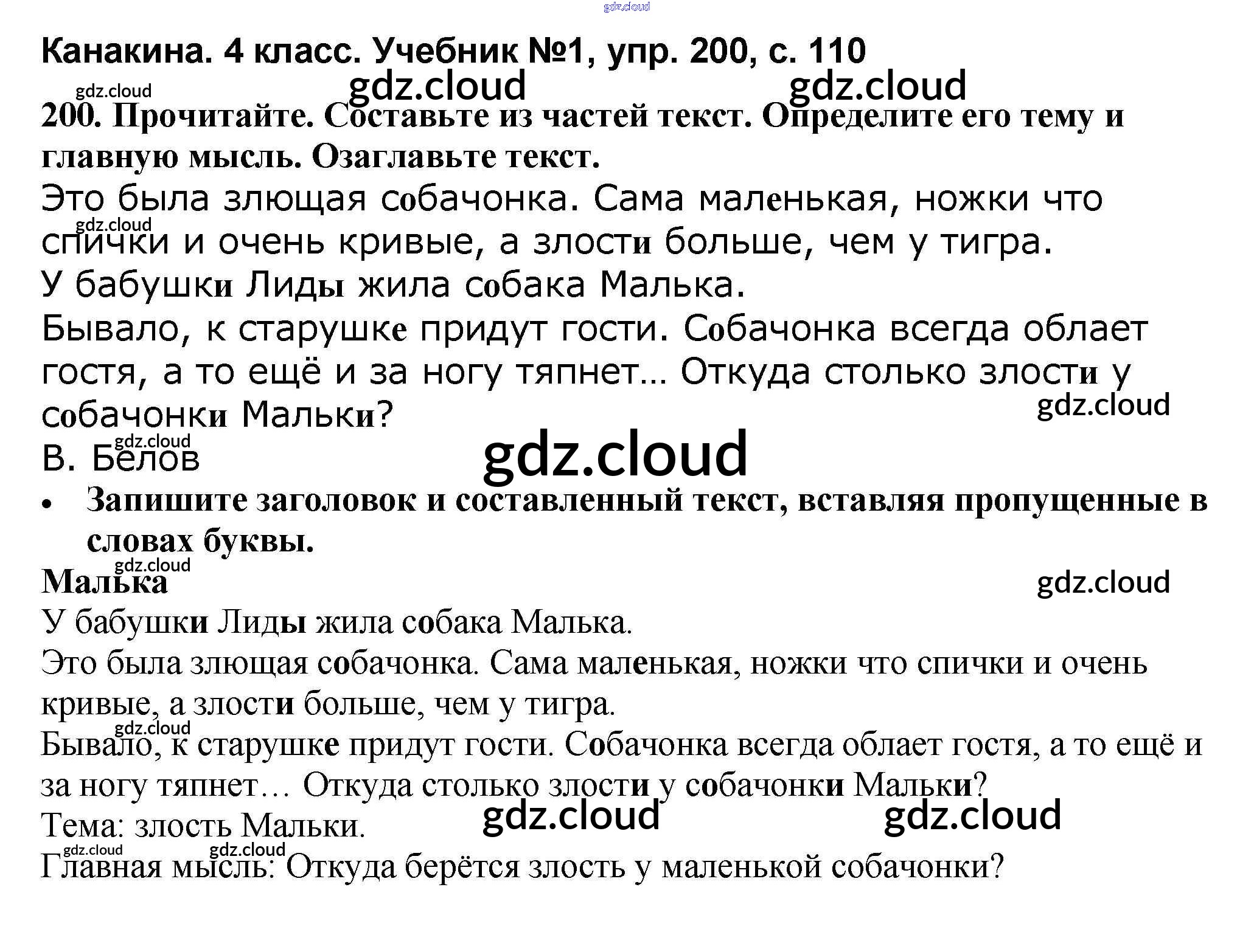 Ответ на задание 200 Учебник Русский язык за 4 (четвертый) класс Канакина, Горецкий Школа России 2015 Часть 1, 2