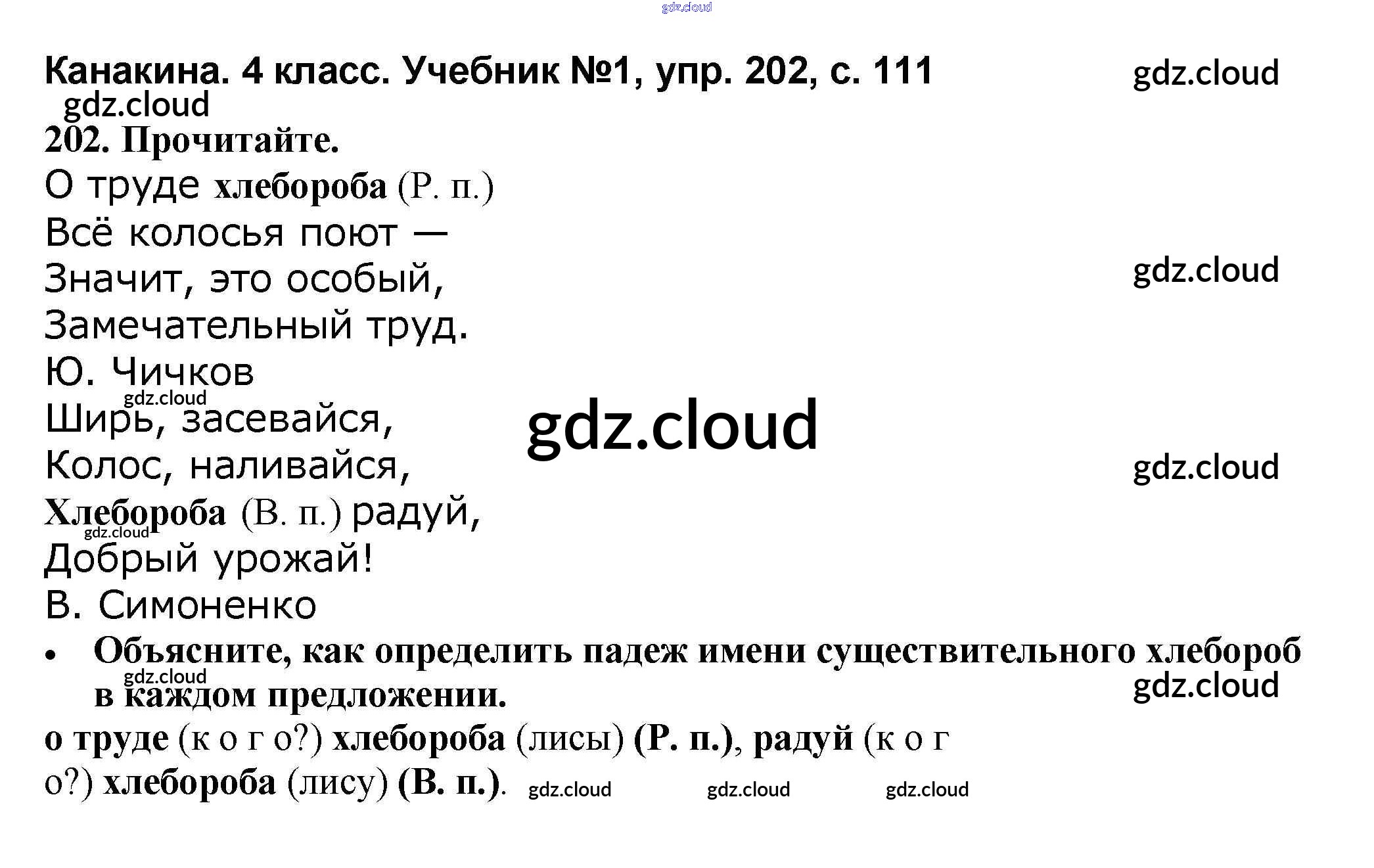 Ответ на задание 202 Учебник Русский язык за 4 (четвертый) класс Канакина, Горецкий Школа России 2015 Часть 1, 2