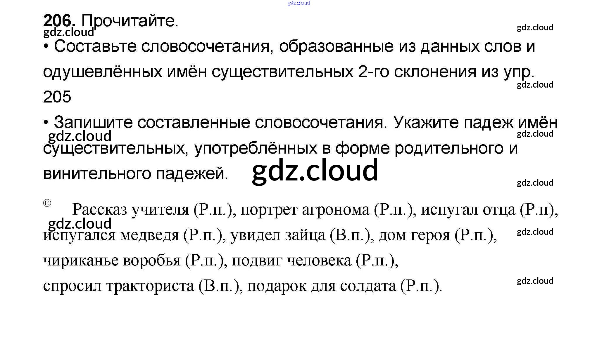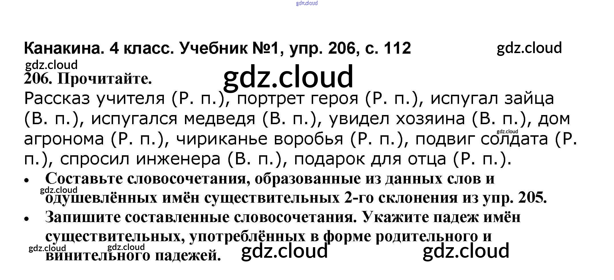 Ответ на задание 206 Учебник Русский язык за 4 (четвертый) класс Канакина, Горецкий Школа России 2015 Часть 1, 2