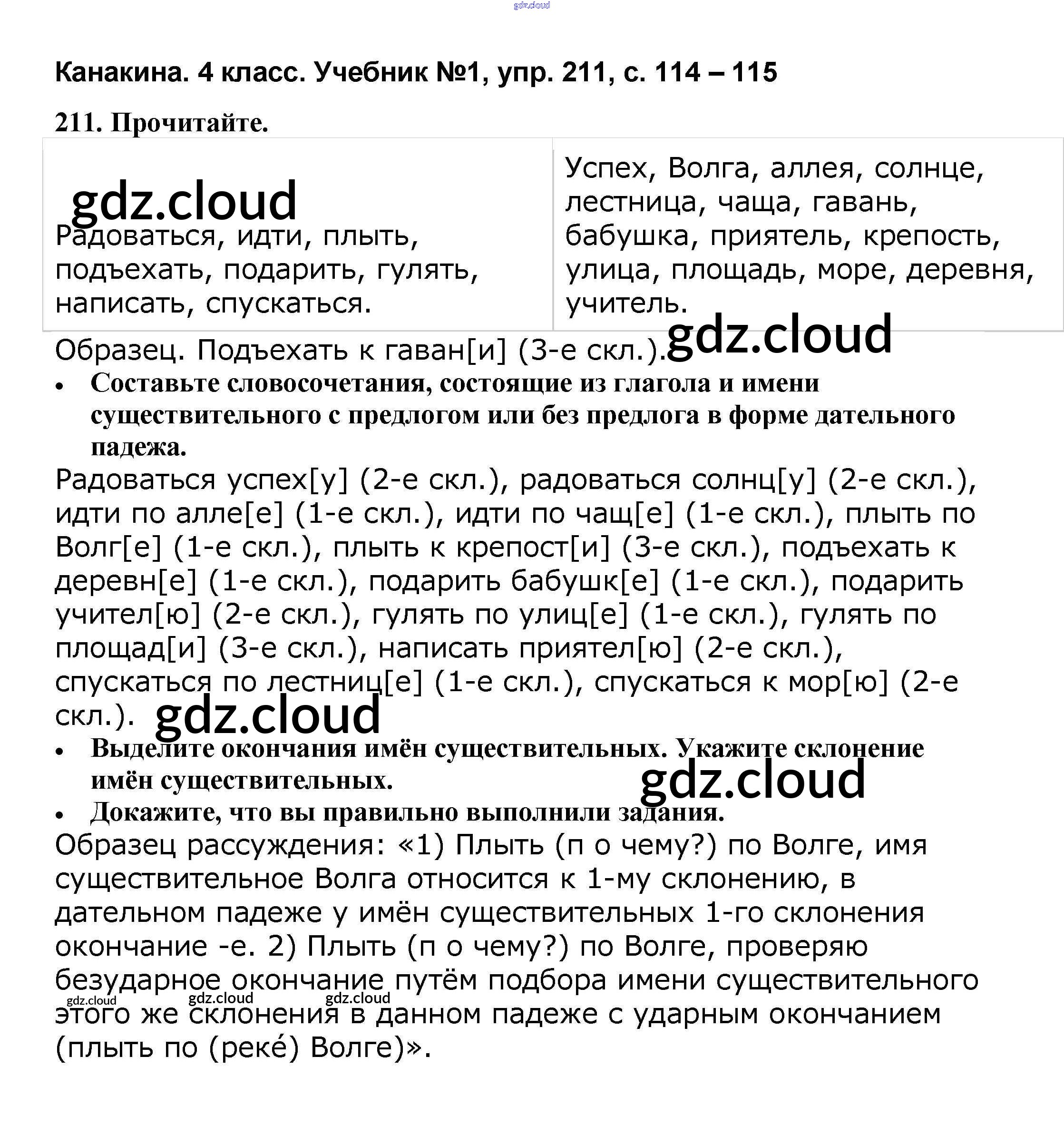 Ответ на задание 211 Учебник Русский язык за 4 (четвертый) класс Канакина, Горецкий Школа России 2015 Часть 1, 2