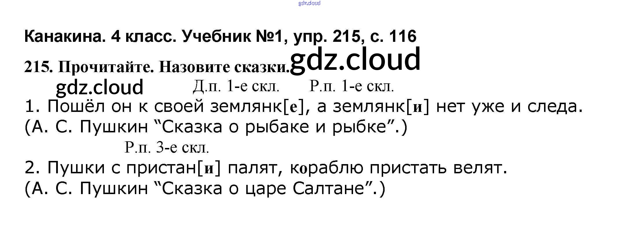 Ответ на задание 215 Учебник Русский язык за 4 (четвертый) класс Канакина, Горецкий Школа России 2015 Часть 1, 2