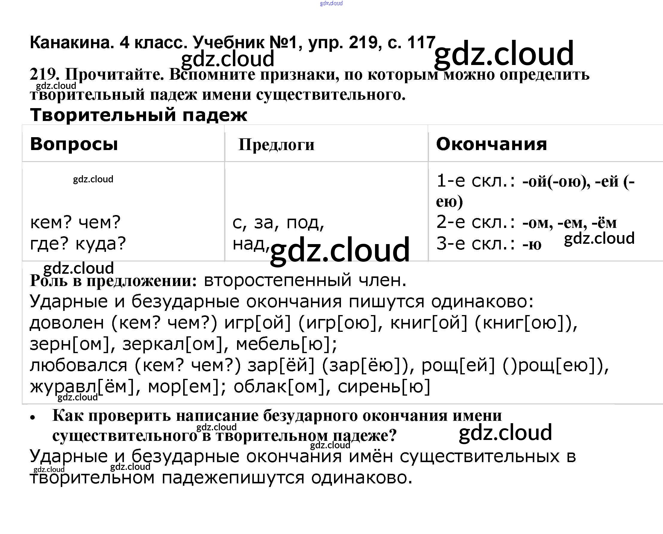 Ответ на задание 219 Учебник Русский язык за 4 (четвертый) класс Канакина, Горецкий Школа России 2015 Часть 1, 2