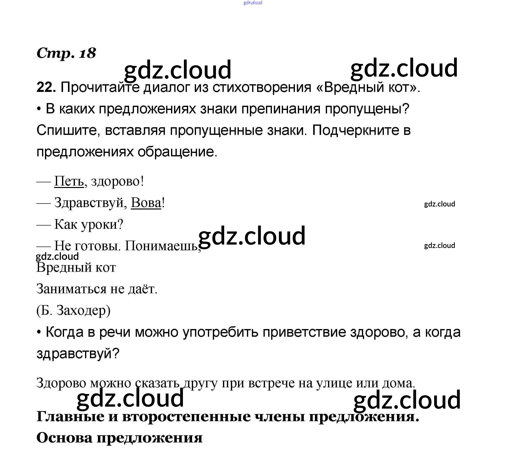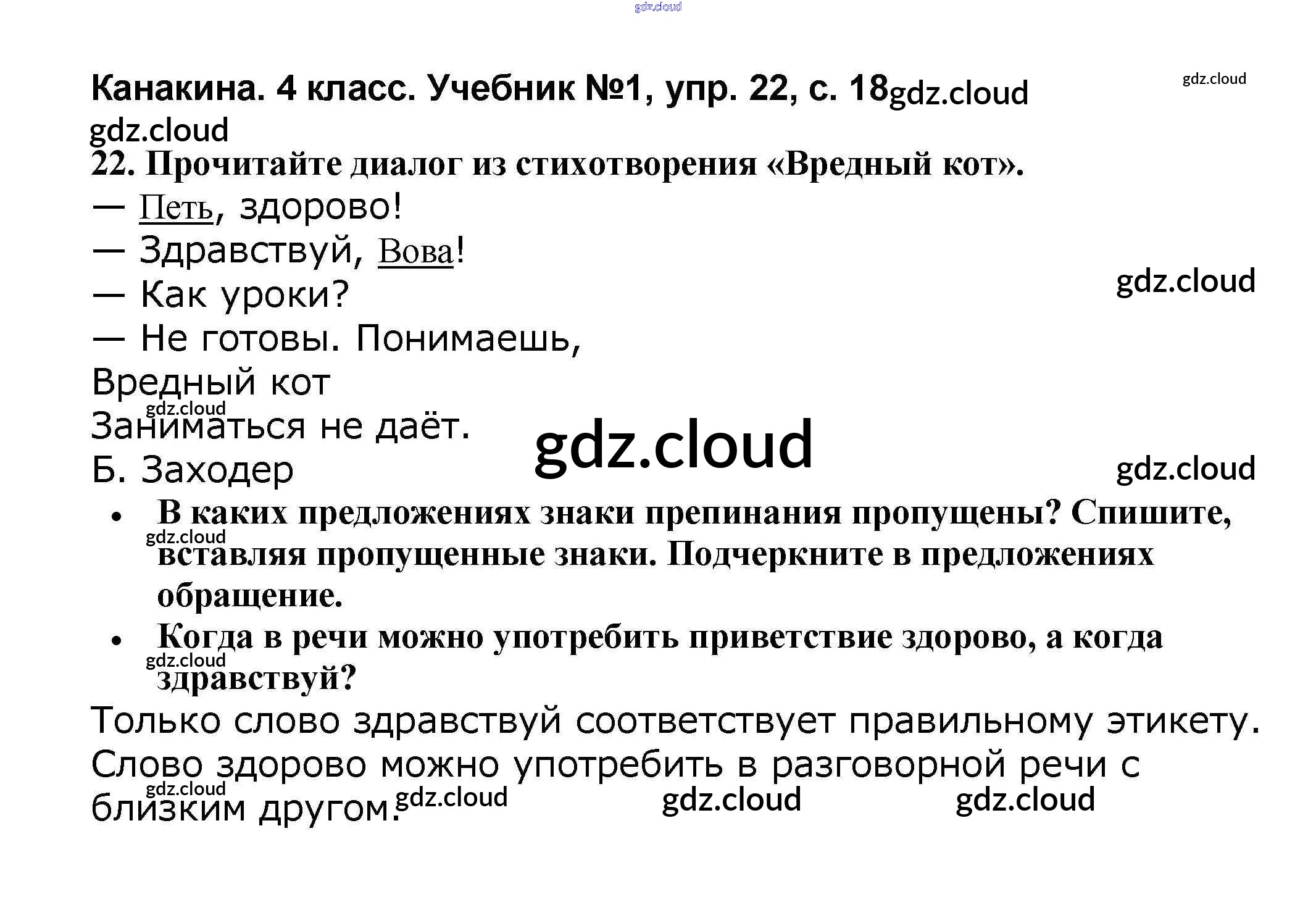 Ответ на задание 22 Учебник Русский язык за 4 (четвертый) класс Канакина, Горецкий Школа России 2015 Часть 1, 2