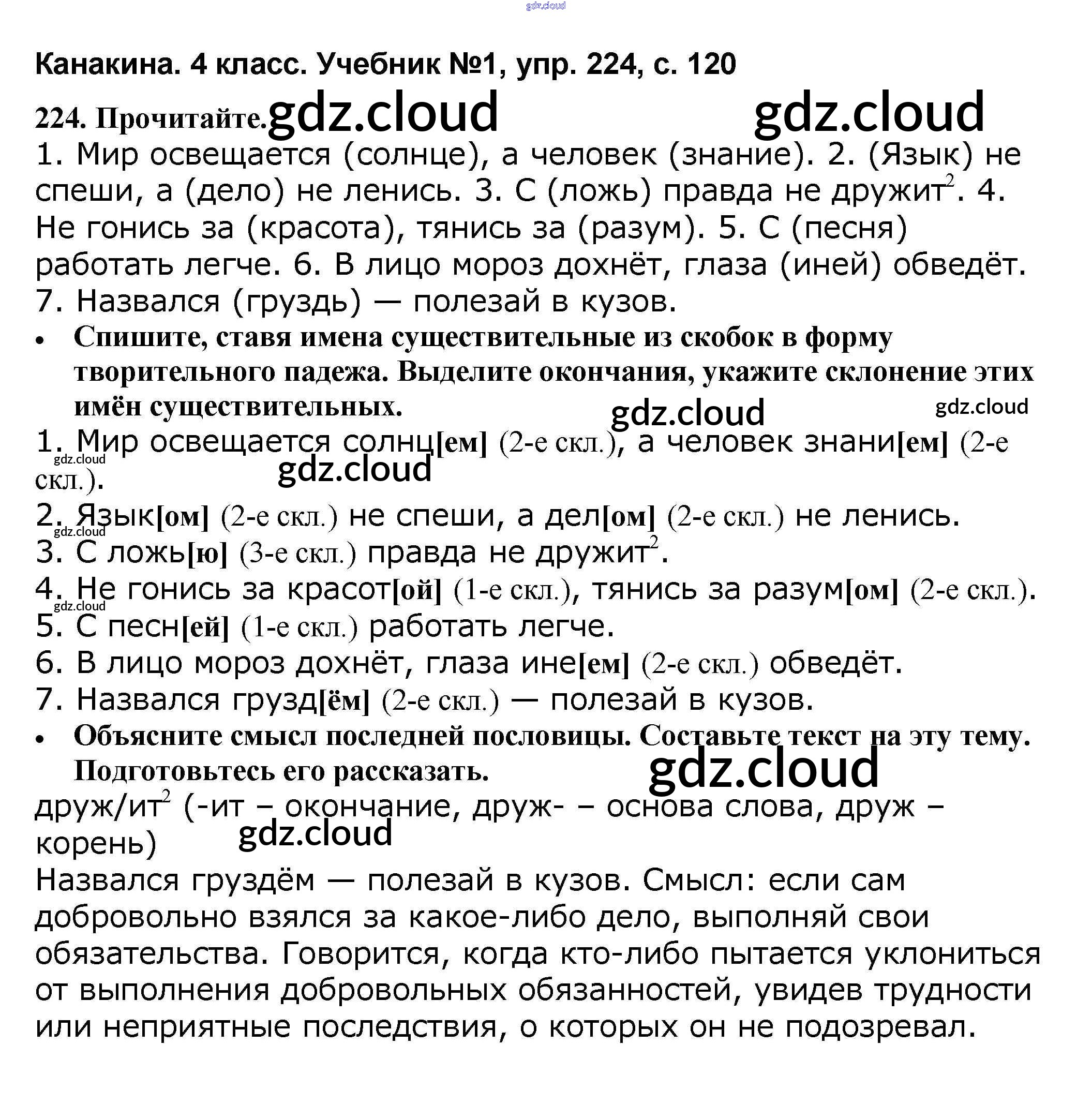Ответ на задание 224 Учебник Русский язык за 4 (четвертый) класс Канакина, Горецкий Школа России 2015 Часть 1, 2