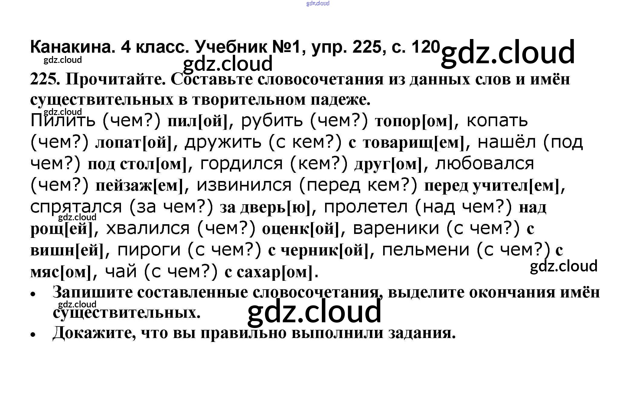 Ответ на задание 225 Учебник Русский язык за 4 (четвертый) класс Канакина, Горецкий Школа России 2015 Часть 1, 2