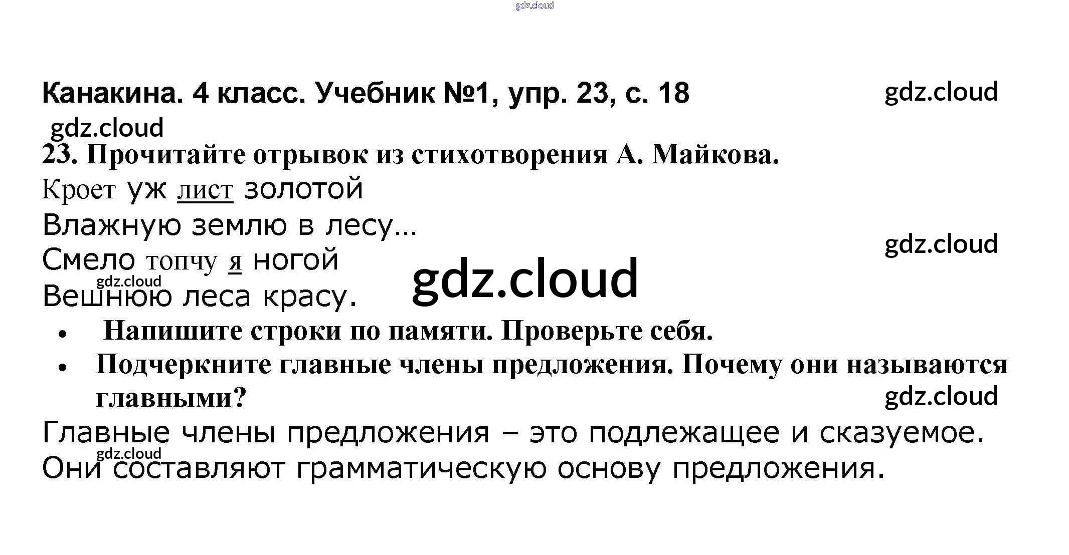 Ответ на задание 23 Учебник Русский язык за 4 (четвертый) класс Канакина, Горецкий Школа России 2015 Часть 1, 2