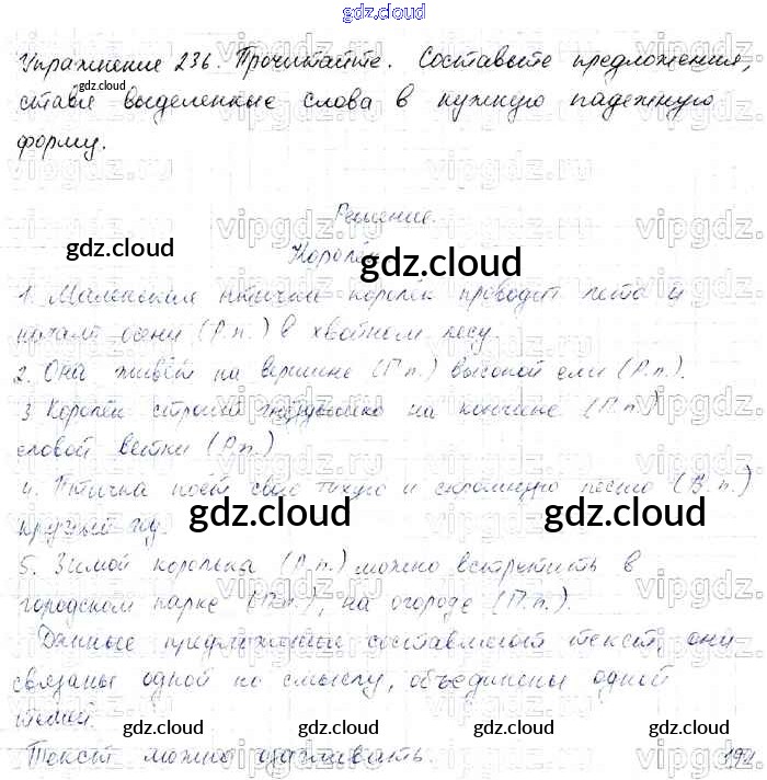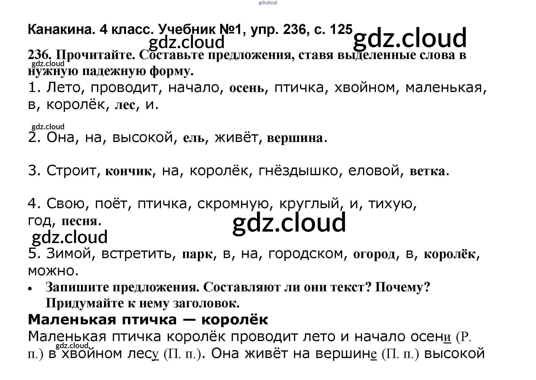 Ответ на задание 236 Учебник Русский язык за 4 (четвертый) класс Канакина, Горецкий Школа России 2015 Часть 1, 2