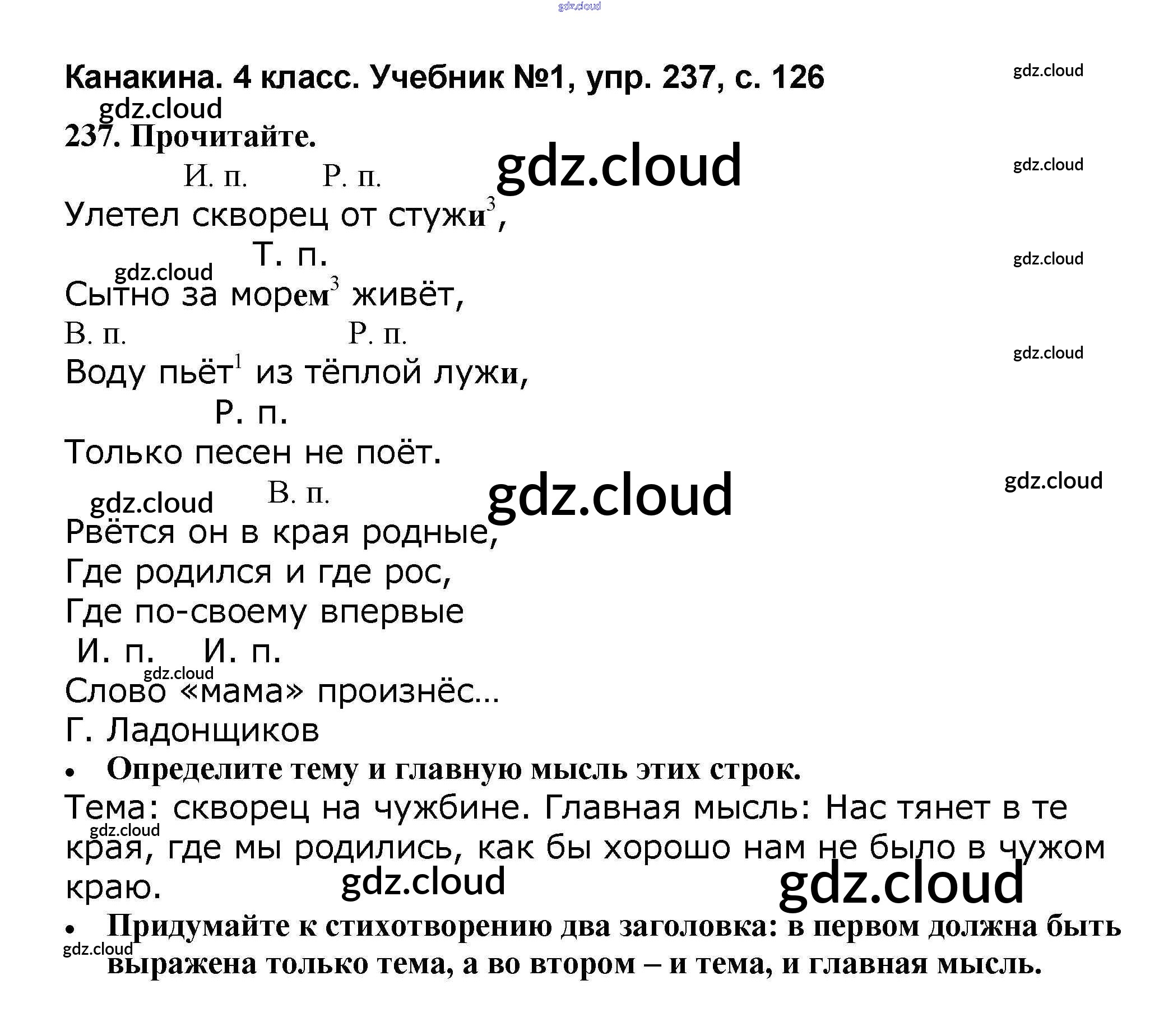 Ответ на задание 237 Учебник Русский язык за 4 (четвертый) класс Канакина, Горецкий Школа России 2015 Часть 1, 2