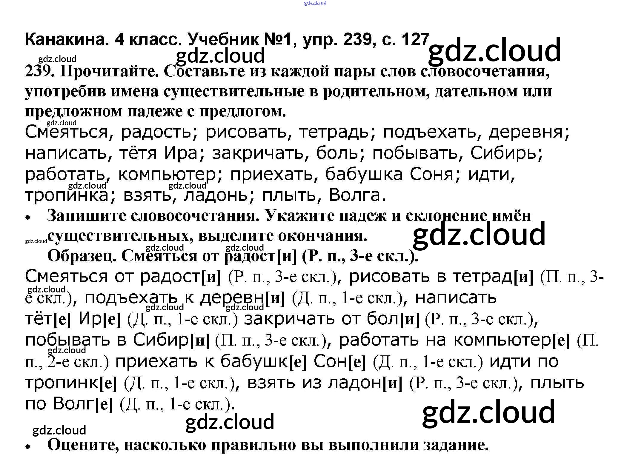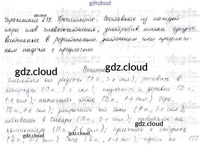Ответ на задание 239 Учебник Русский язык за 4 (четвертый) класс Канакина, Горецкий Школа России 2015 Часть 1, 2