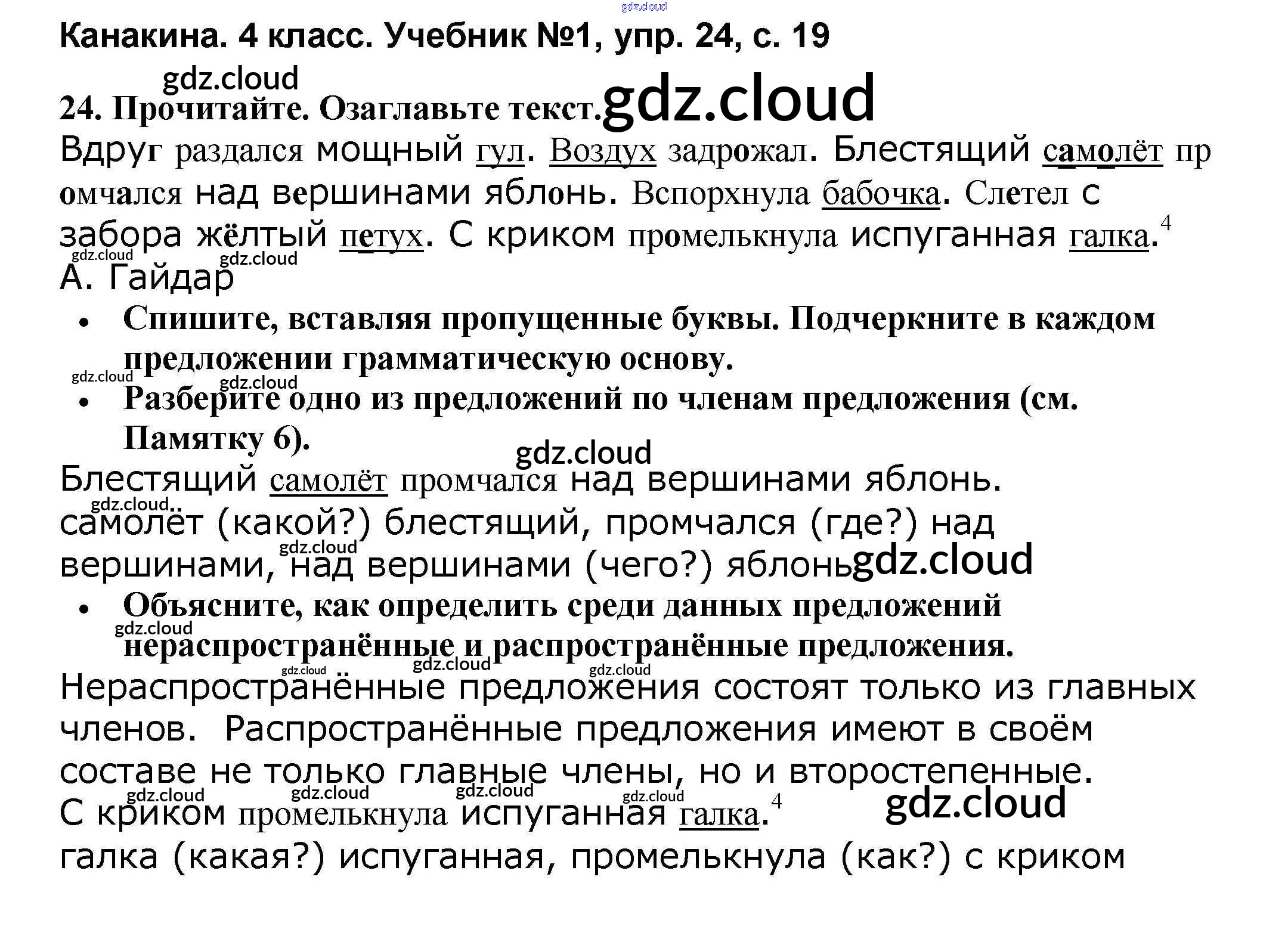 Ответ на задание 24 Учебник Русский язык за 4 (четвертый) класс Канакина, Горецкий Школа России 2015 Часть 1, 2