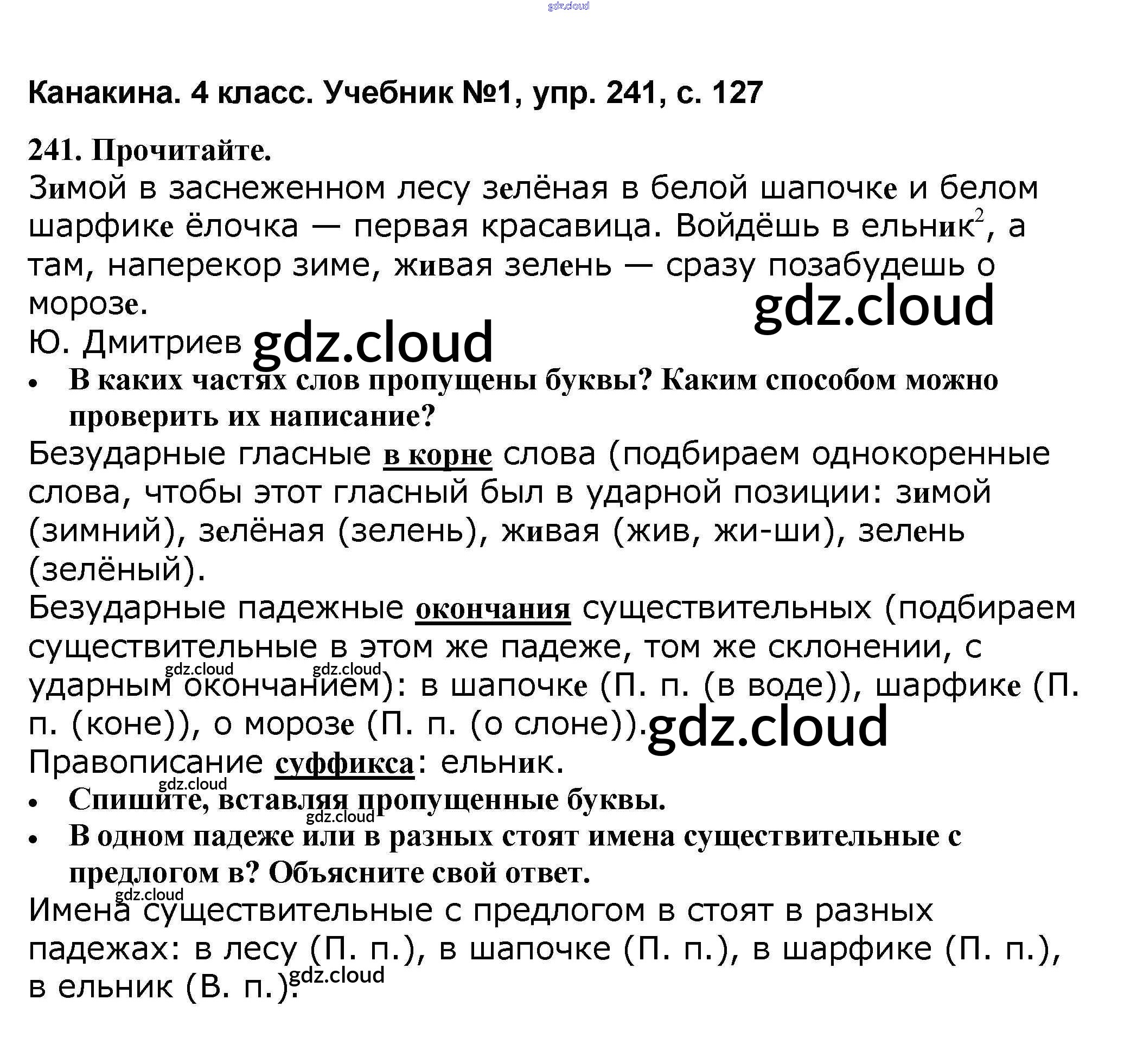 Ответ на задание 241 Учебник Русский язык за 4 (четвертый) класс Канакина, Горецкий Школа России 2015 Часть 1, 2