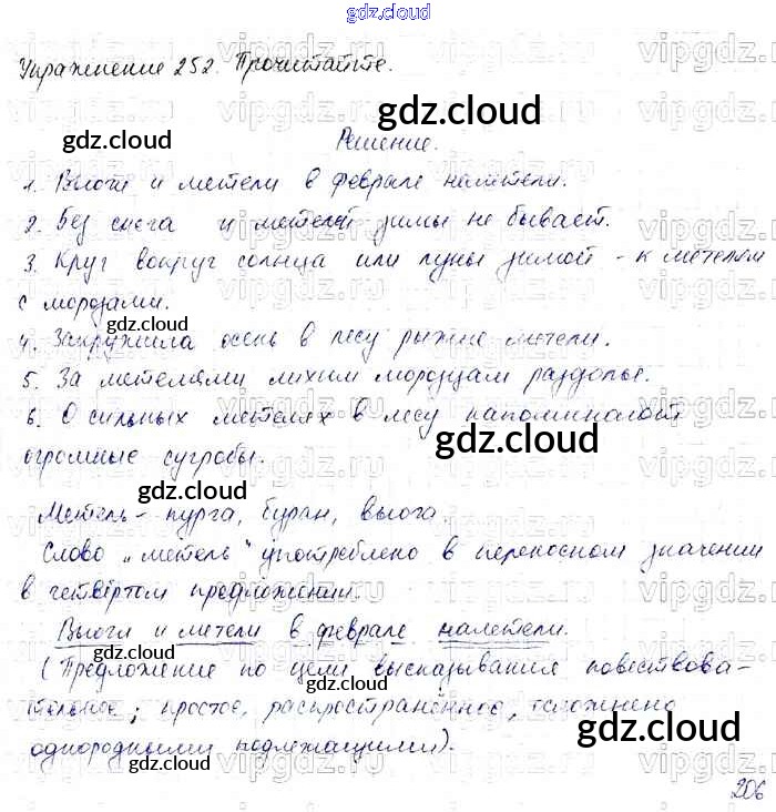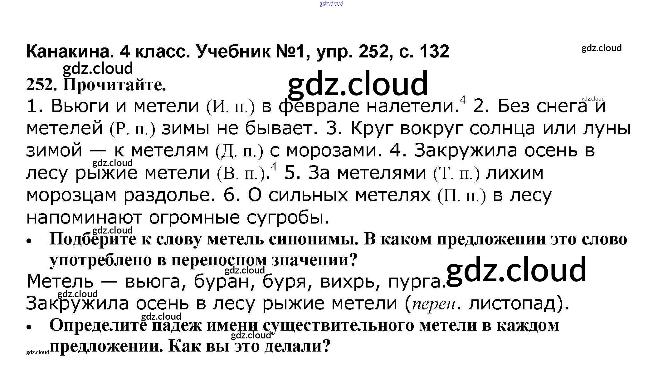 Ответ на задание 252 Учебник Русский язык за 4 (четвертый) класс Канакина, Горецкий Школа России 2015 Часть 1, 2