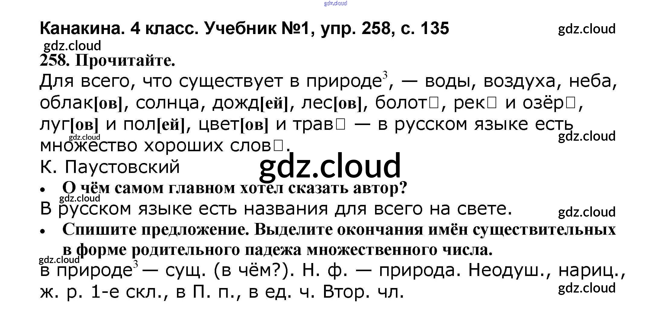 Ответ на задание 258 Учебник Русский язык за 4 (четвертый) класс Канакина, Горецкий Школа России 2015 Часть 1, 2