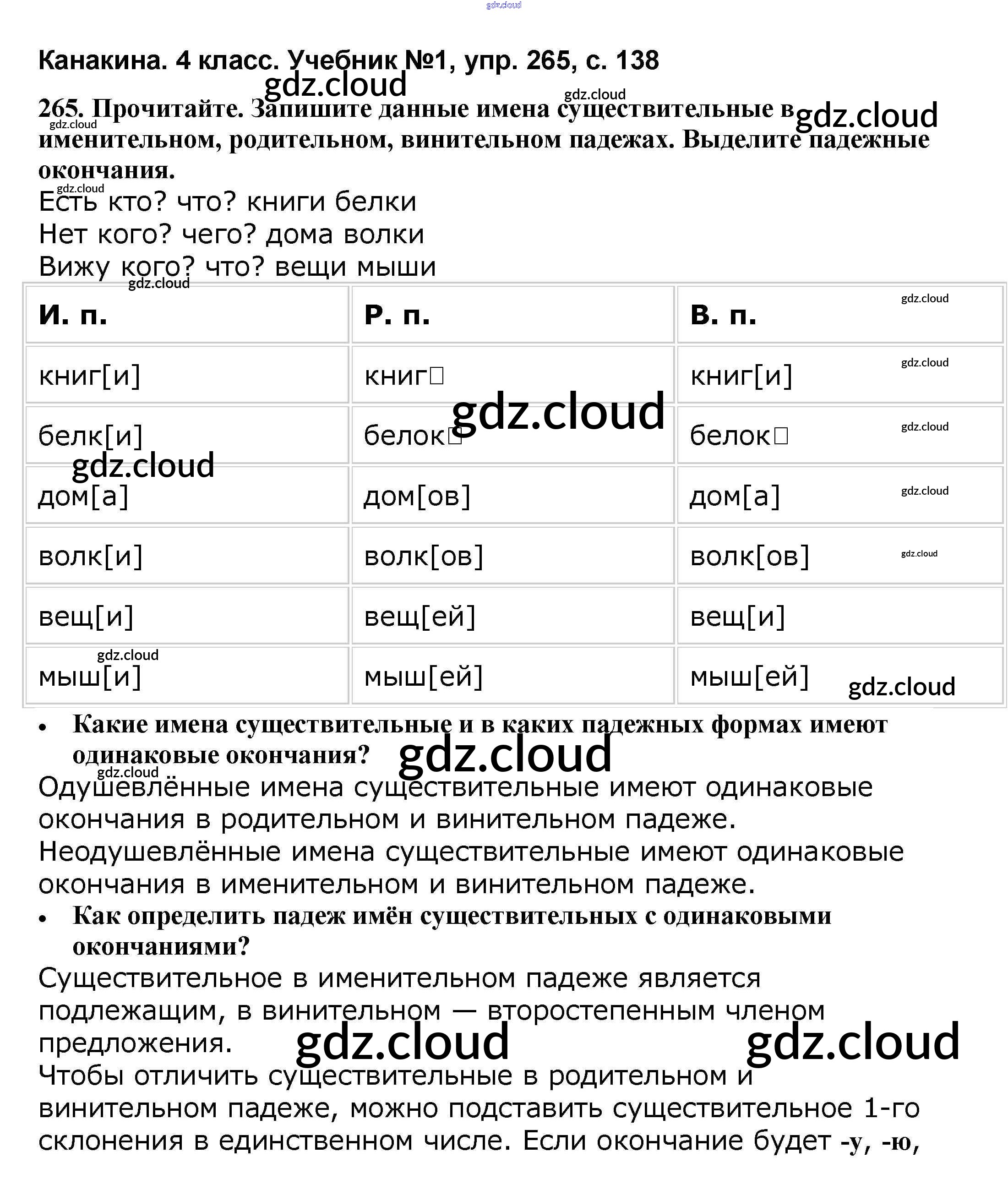 Ответ на задание 265 Учебник Русский язык за 4 (четвертый) класс Канакина, Горецкий Школа России 2015 Часть 1, 2