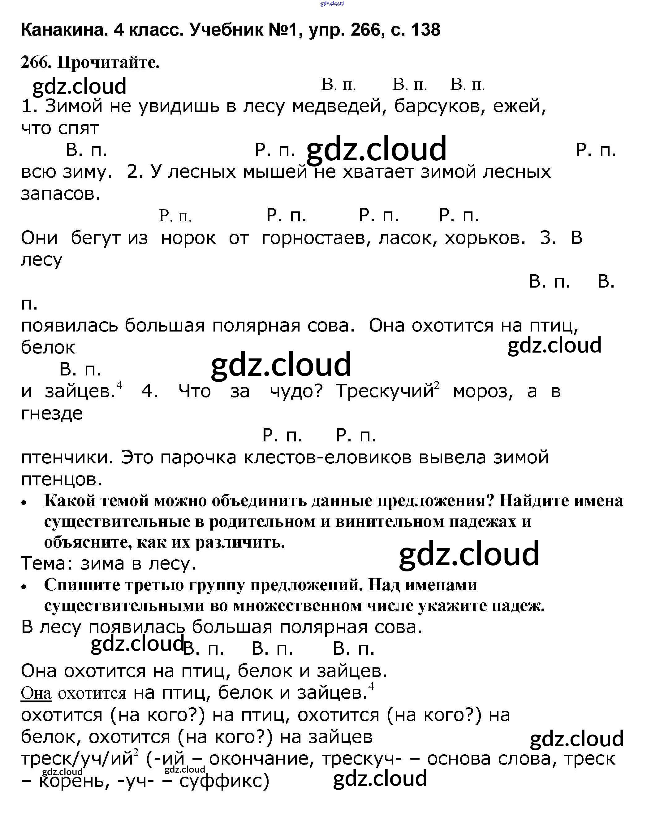 Ответ на задание 266 Учебник Русский язык за 4 (четвертый) класс Канакина, Горецкий Школа России 2015 Часть 1, 2