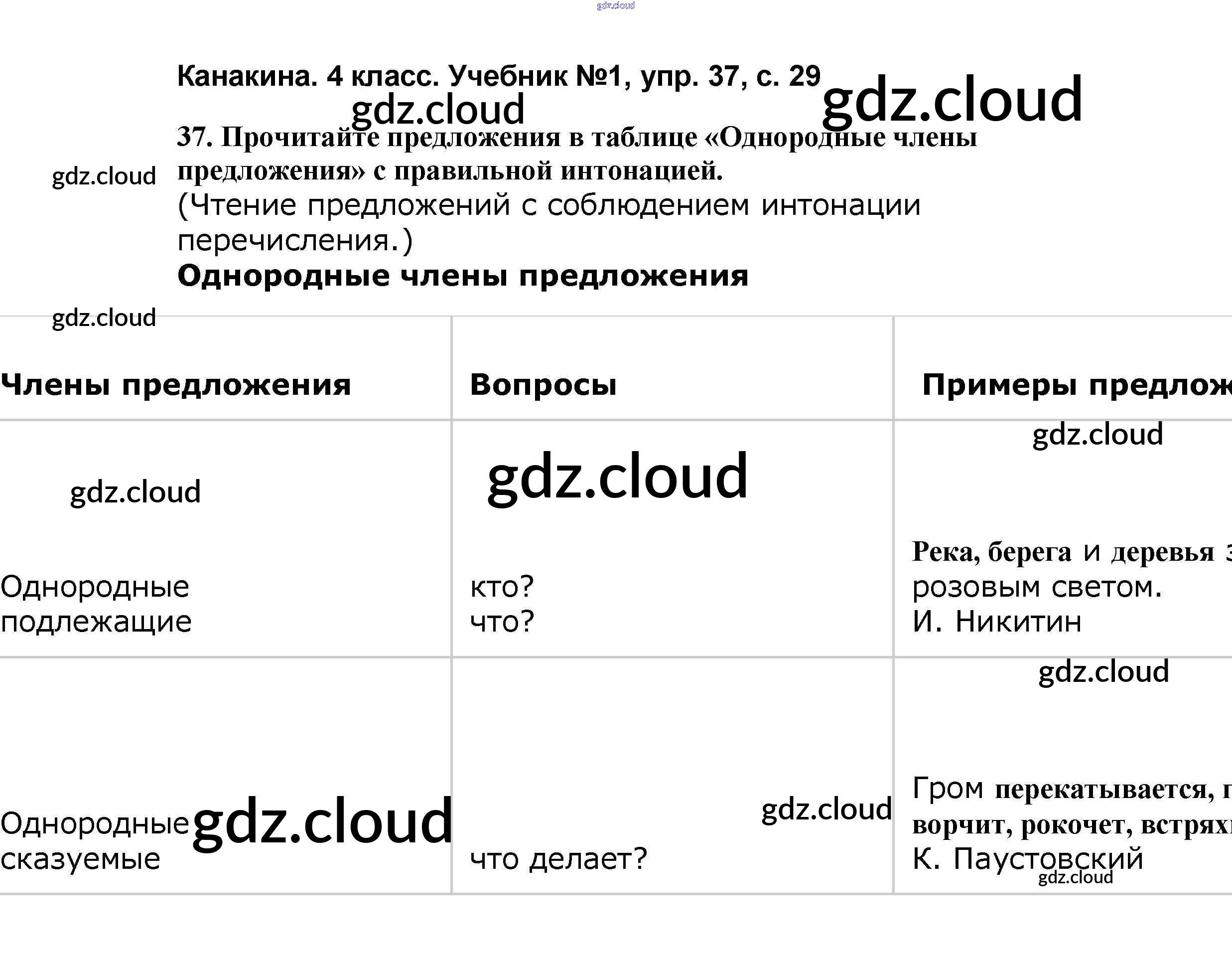 Ответ на задание 37 Учебник Русский язык за 4 (четвертый) класс Канакина, Горецкий Школа России 2015 Часть 1, 2