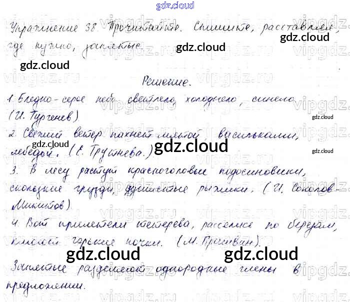 Ответ на задание 38 Учебник Русский язык за 4 (четвертый) класс Канакина, Горецкий Школа России 2015 Часть 1, 2