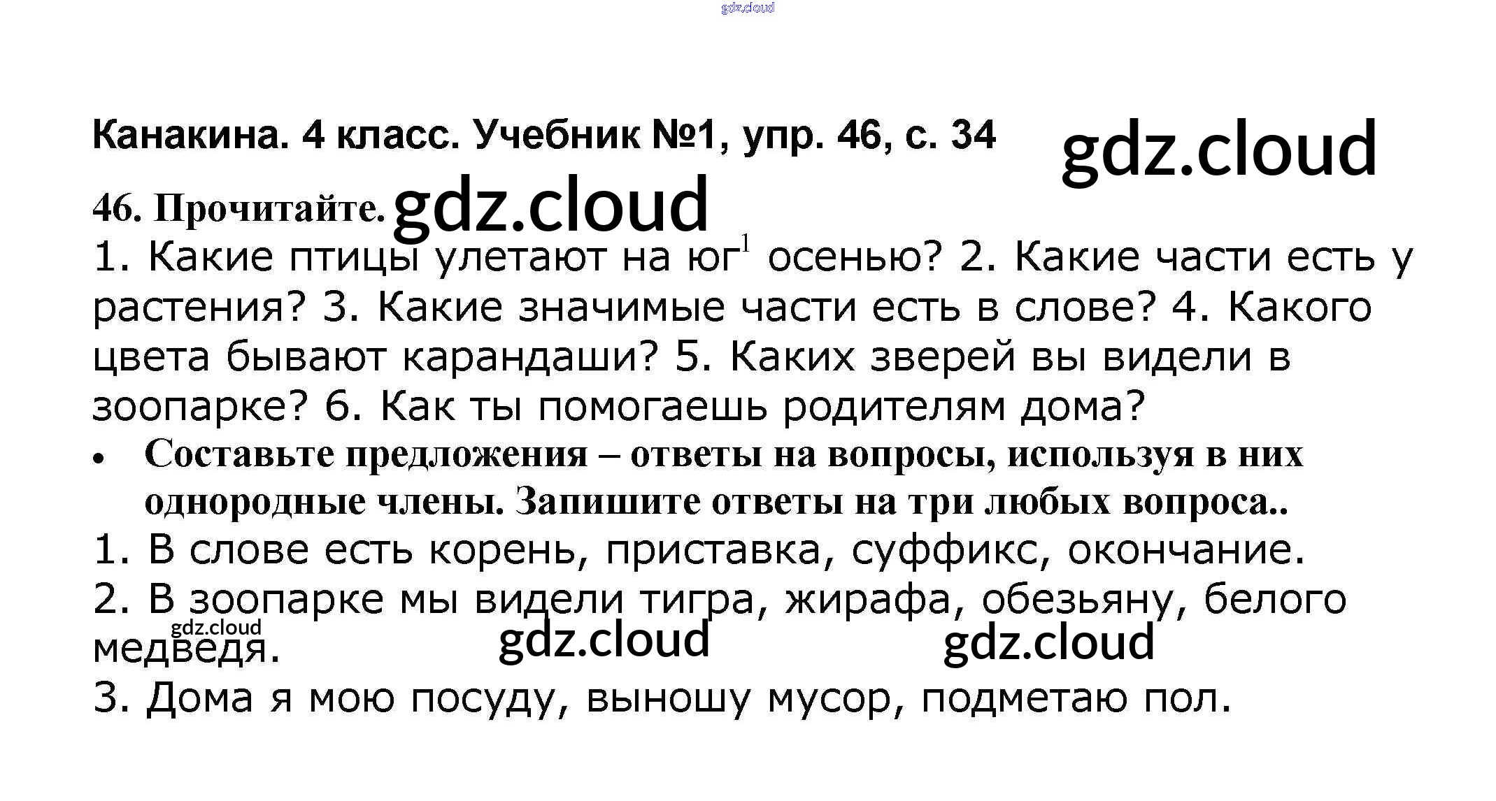 Ответ на задание 46 Учебник Русский язык за 4 (четвертый) класс Канакина, Горецкий Школа России 2015 Часть 1, 2