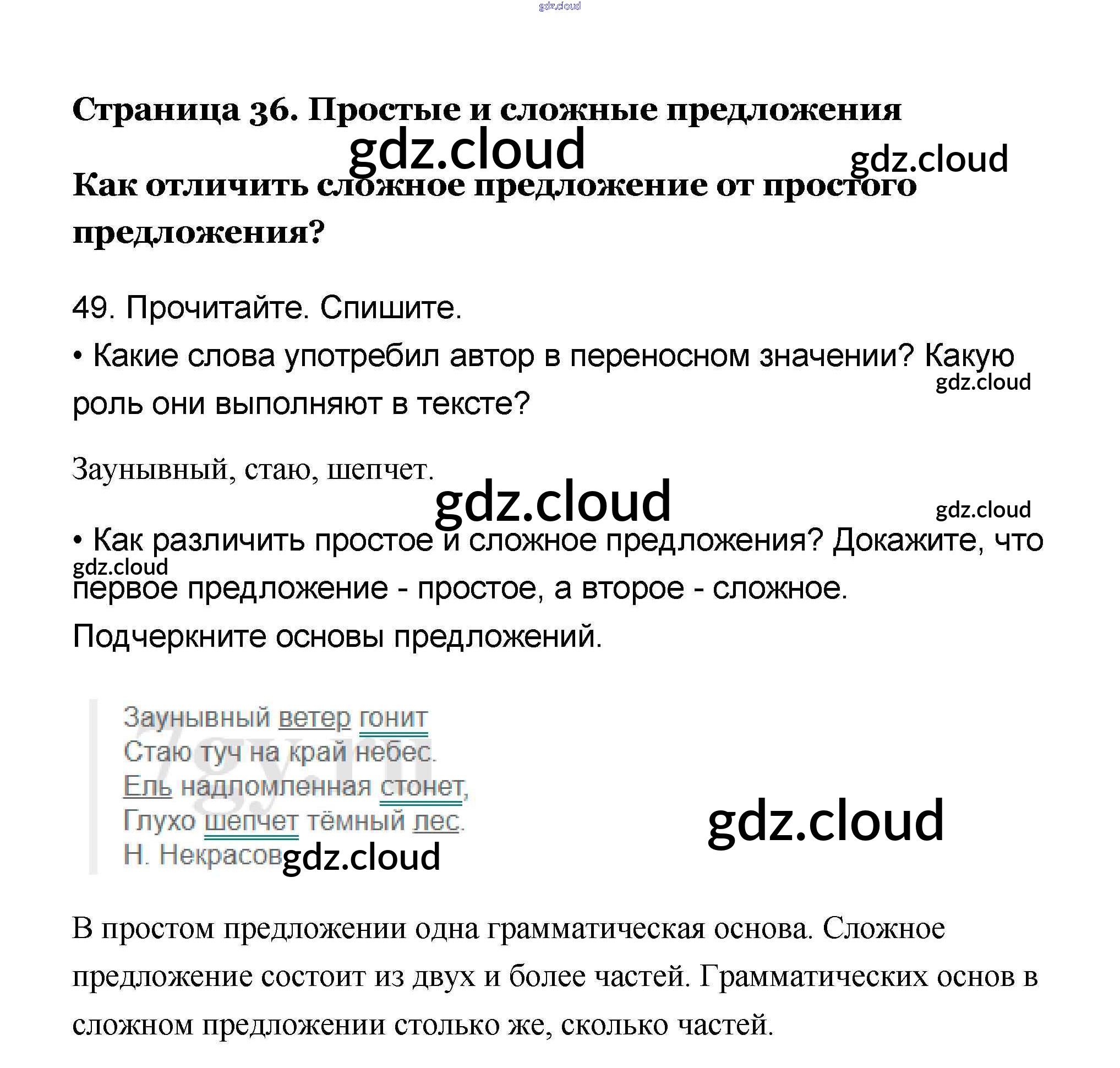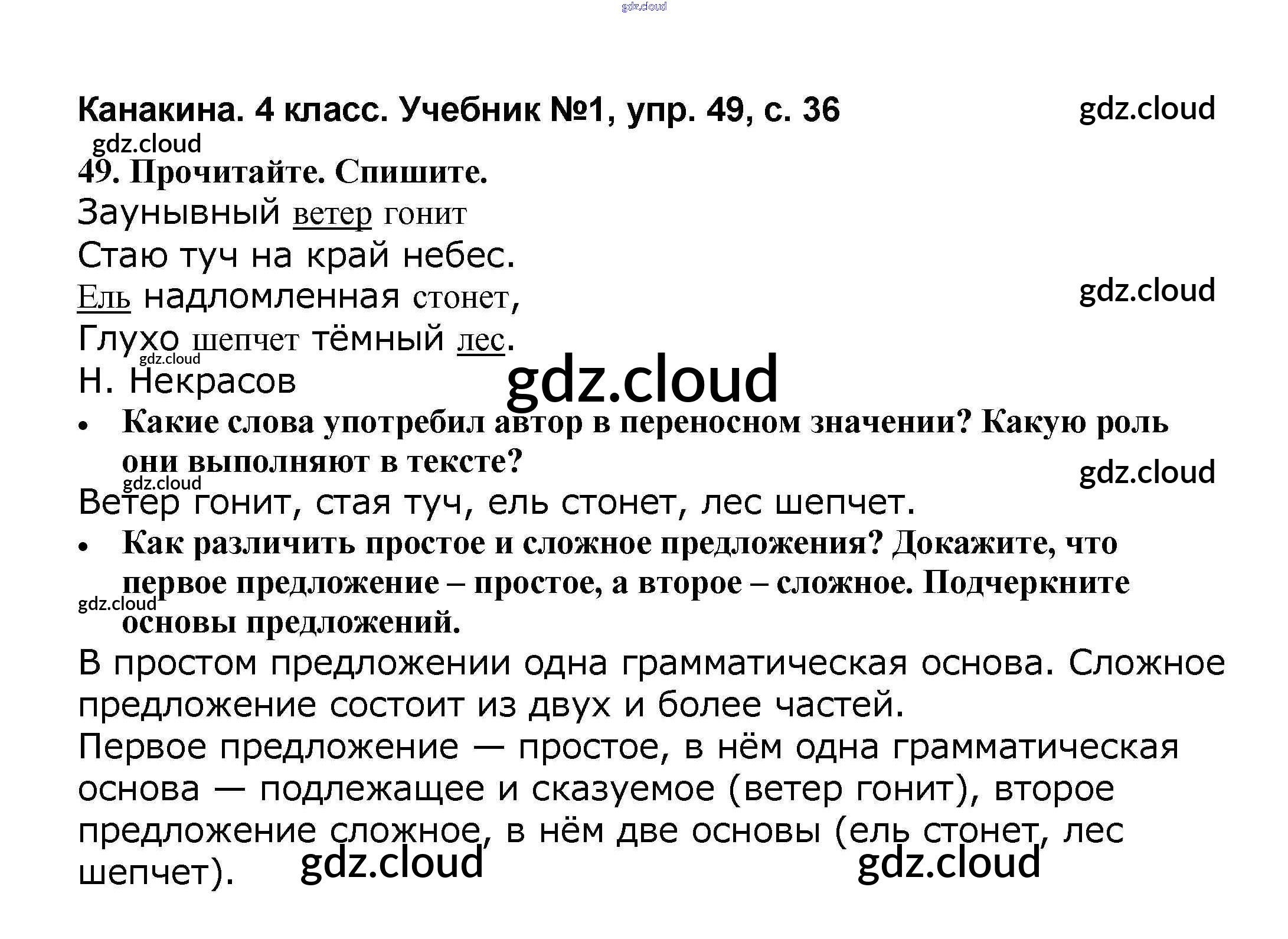 Ответ на задание 49 Учебник Русский язык за 4 (четвертый) класс Канакина, Горецкий Школа России 2015 Часть 1, 2