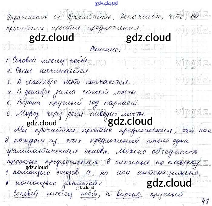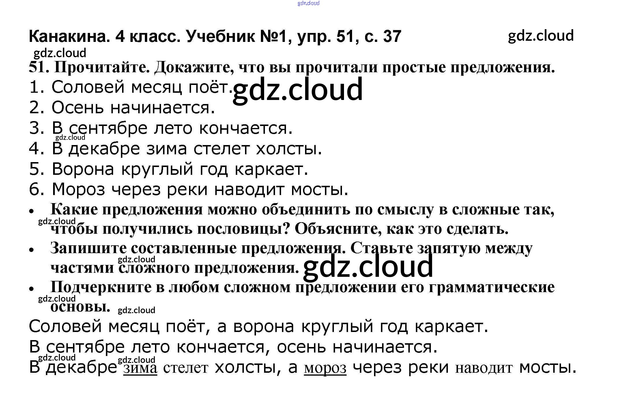 Ответ на задание 51 Учебник Русский язык за 4 (четвертый) класс Канакина, Горецкий Школа России 2015 Часть 1, 2