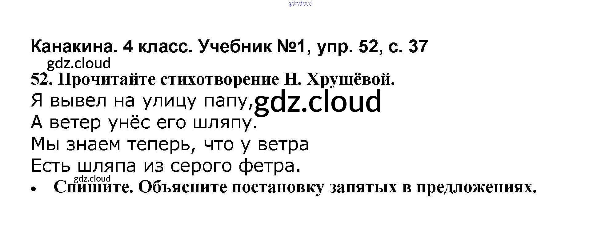 Ответ на задание 52 Учебник Русский язык за 4 (четвертый) класс Канакина, Горецкий Школа России 2015 Часть 1, 2