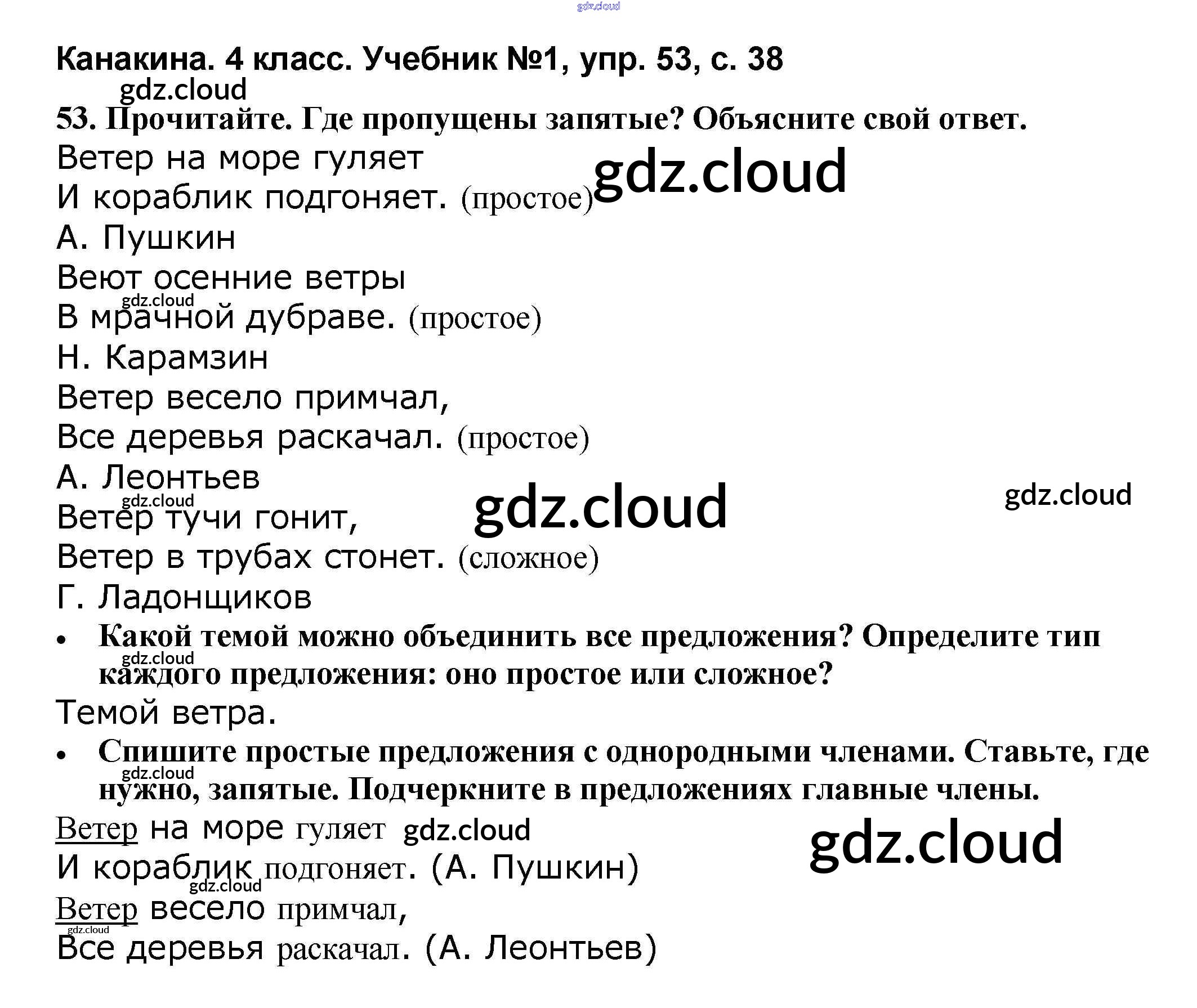 Ответ на задание 53 Учебник Русский язык за 4 (четвертый) класс Канакина, Горецкий Школа России 2015 Часть 1, 2