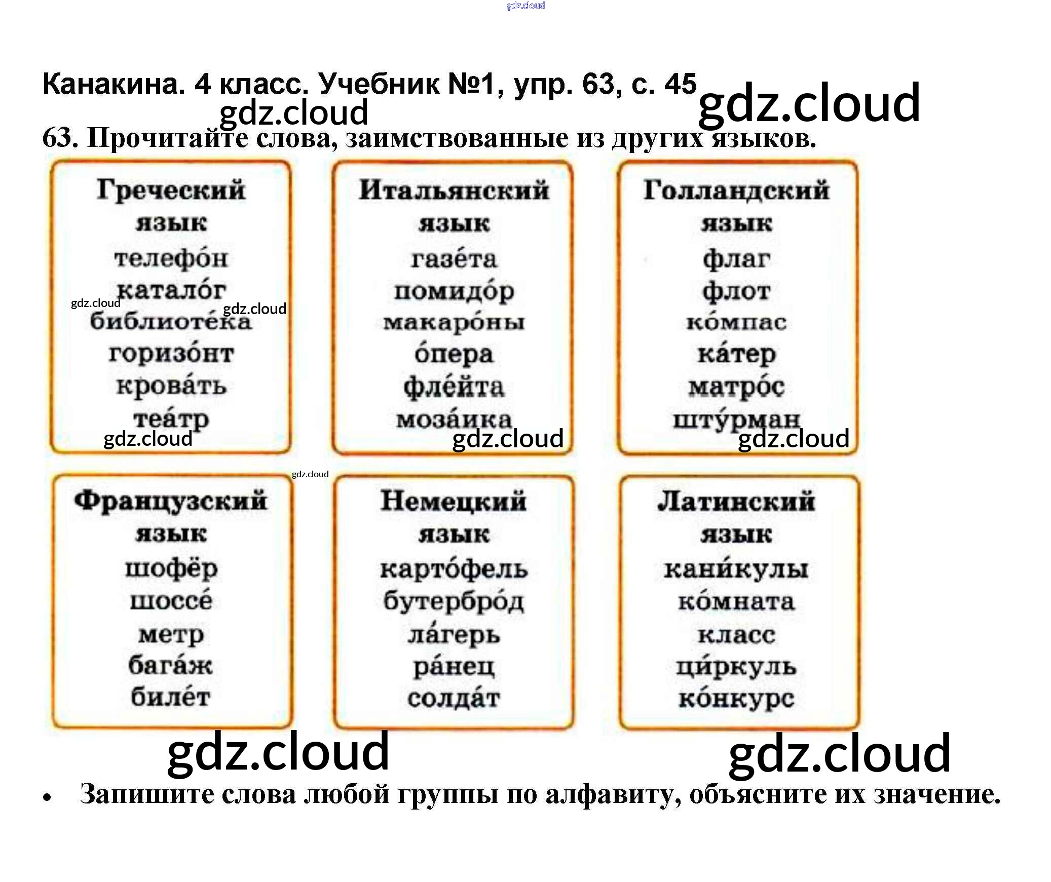Ответ на задание 63 Учебник Русский язык за 4 (четвертый) класс Канакина, Горецкий Школа России 2015 Часть 1, 2