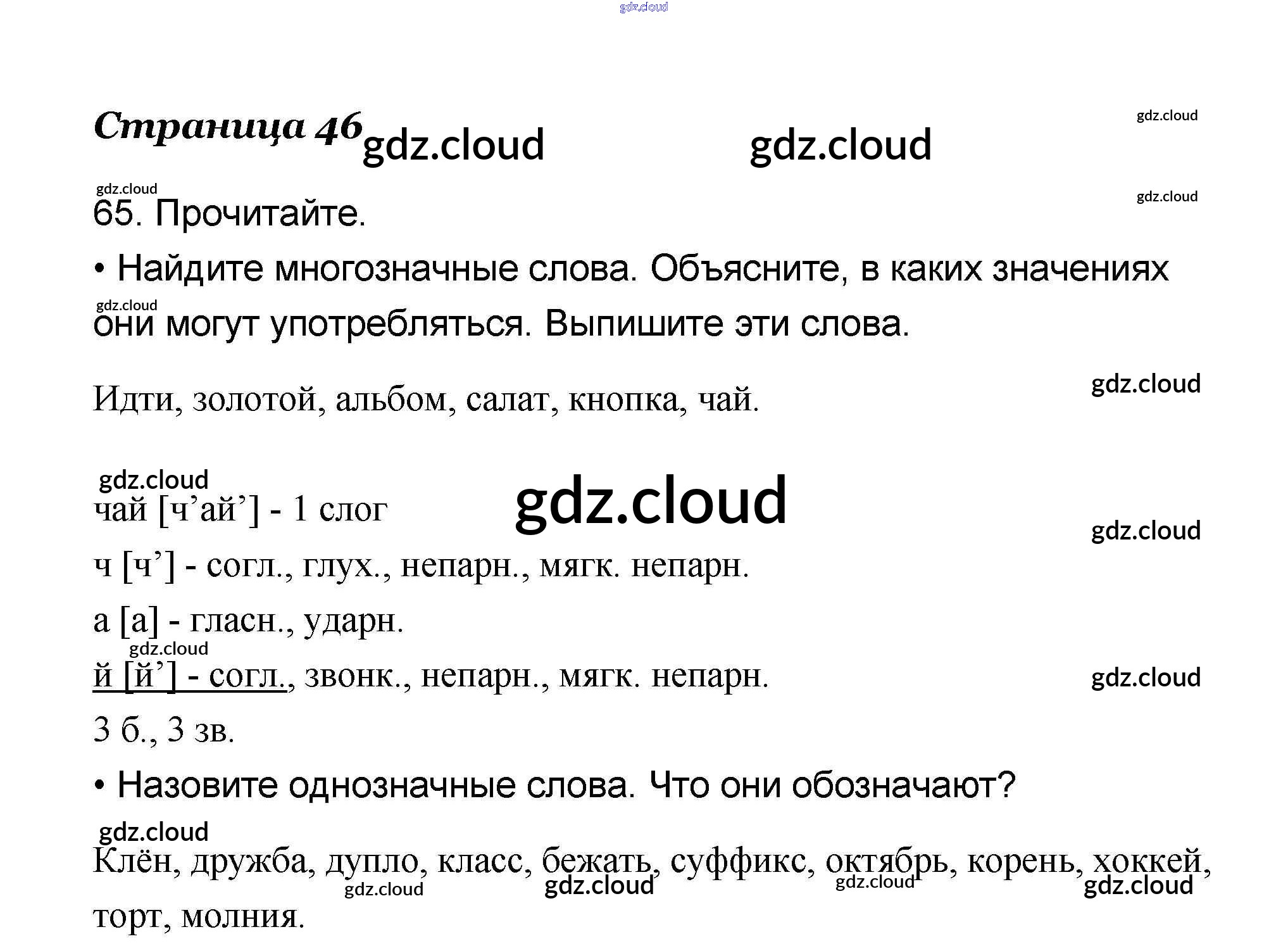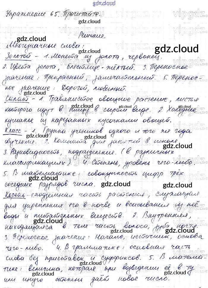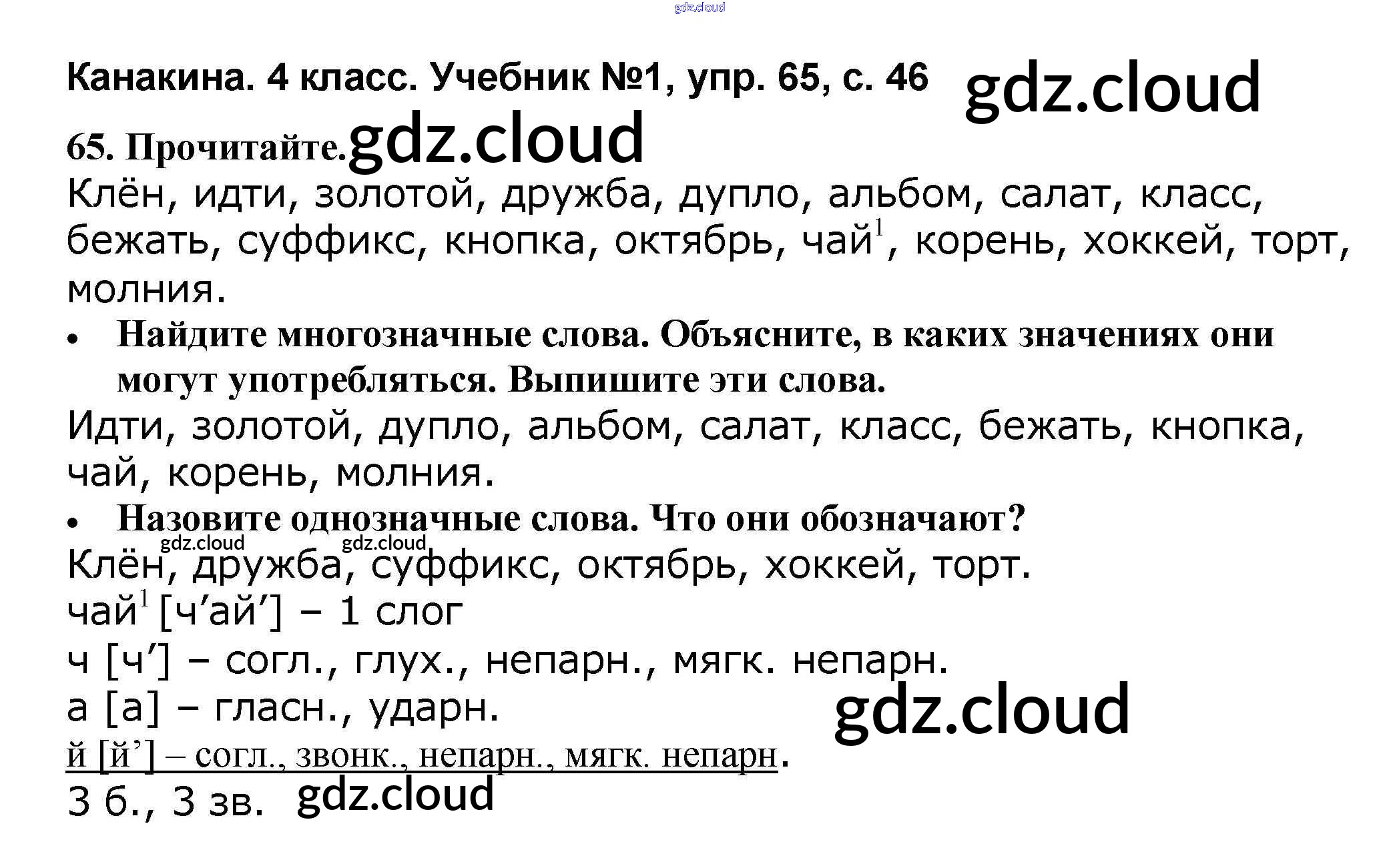 Ответ на задание 65 Учебник Русский язык за 4 (четвертый) класс Канакина, Горецкий Школа России 2015 Часть 1, 2