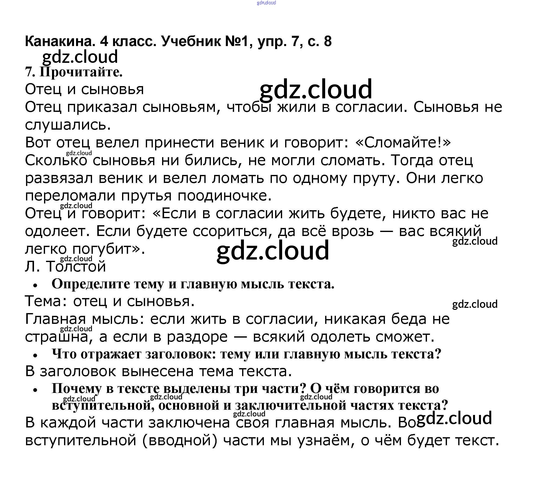 Ответ на задание 7 Учебник Русский язык за 4 (четвертый) класс Канакина, Горецкий Школа России 2015 Часть 1, 2
